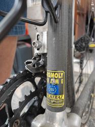 Auf dem Unterrohr klebt ein Kinesis Gabel Aufkleber und auf dem Sitzrohr irgendein Cromoly?? Bapperl.Sieht aber nicht wie Alu aus. Bist du sicher?