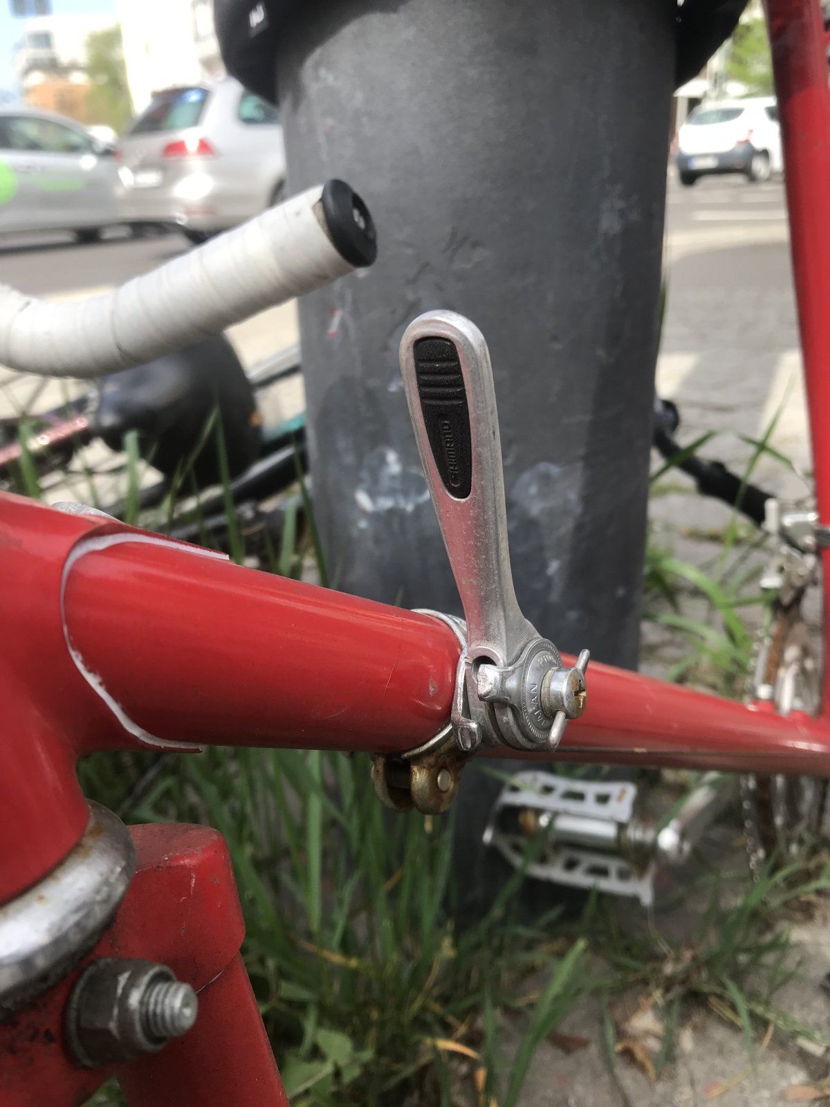 mindestens die Gabel ist nicht Original. Ersatz bei eBay liegt bei mindestens EUR 100. In dem Zustand und als Fixie ist fast nur der Rahmen verwendbar, ansonsten gehört da Dura Ace oder für die Italo-Fans hier eine Record Gruppe dran. Derzeit ist soweit ich das sehen kann nur die Kurbel Dura Ace, und noch eine zu alte. Der Rahmen wäre mir in dieser Farbe und dem Zustand weniger als 400 wert, die Experten mögen mich da gerne korrigieren.