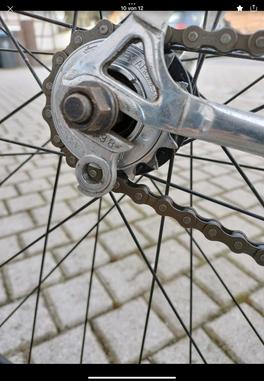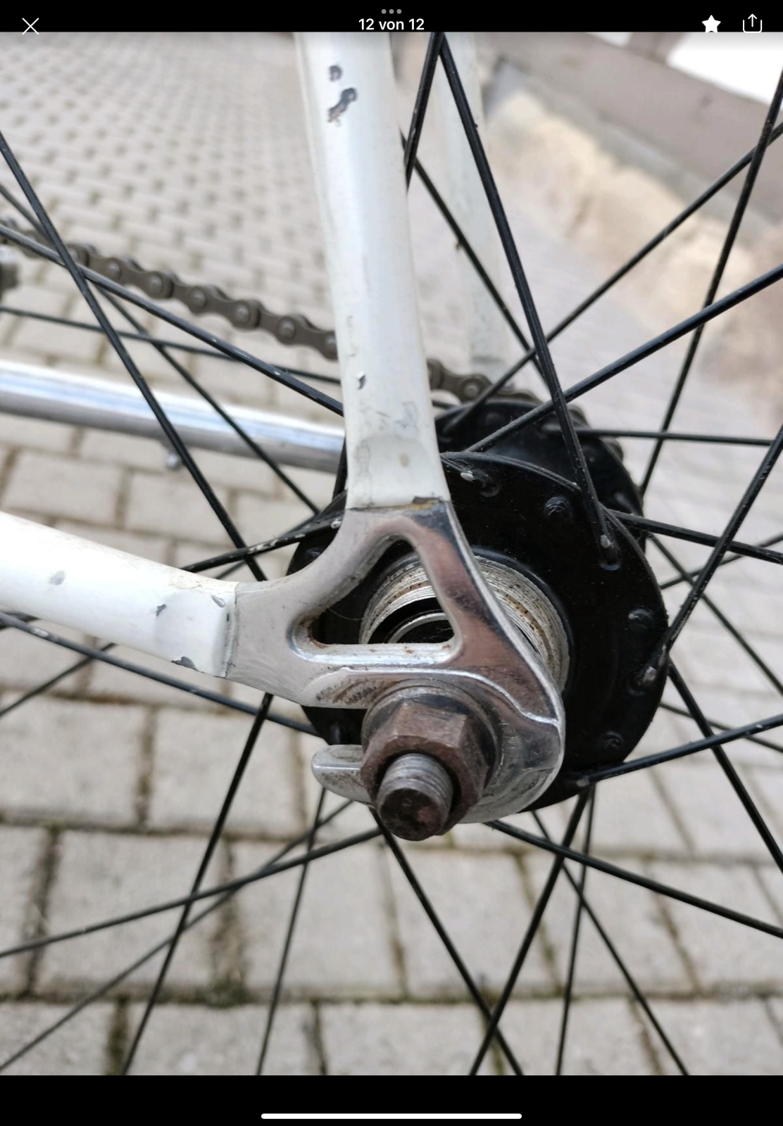 Gabel ist eine Benotto und gehört nicht in den Rahmen. Wie schon oben erwähnt ne ziemliche Würfelbude. LRS scheint ein Fixie zu sein mit wahrscheinlich 120mm EBB oder so. Muss man sich alles genau angucken. ICH würde sowas gar nicht kaufen und lieber ein paar Taler mehr anlegen für etwas besseres
