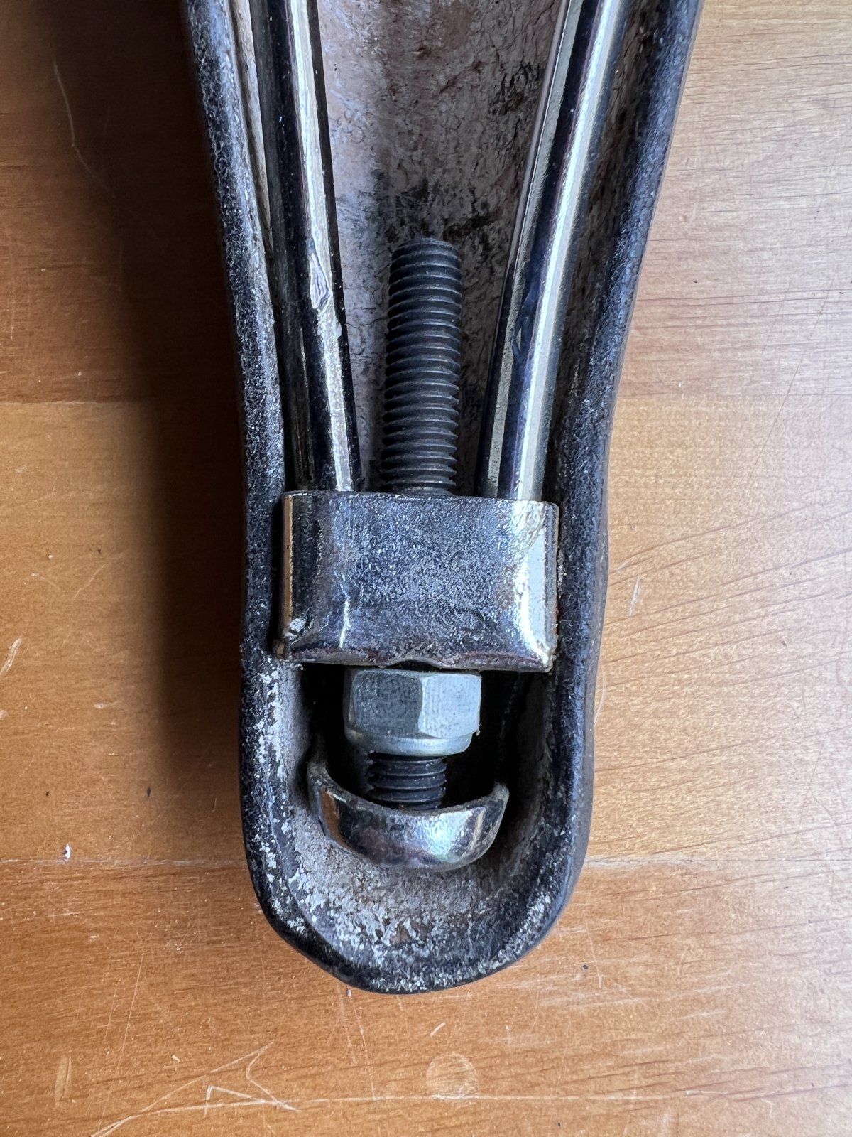 Bezüglich wie es darunter aussieht: der Rahmen ist im Tretlager und den Ausnehmungen im Tretlager, über welche das Blech genietet wurde, komplett trocken: ich glaube der Rahmen wurde nie bei Regen gefahren.
