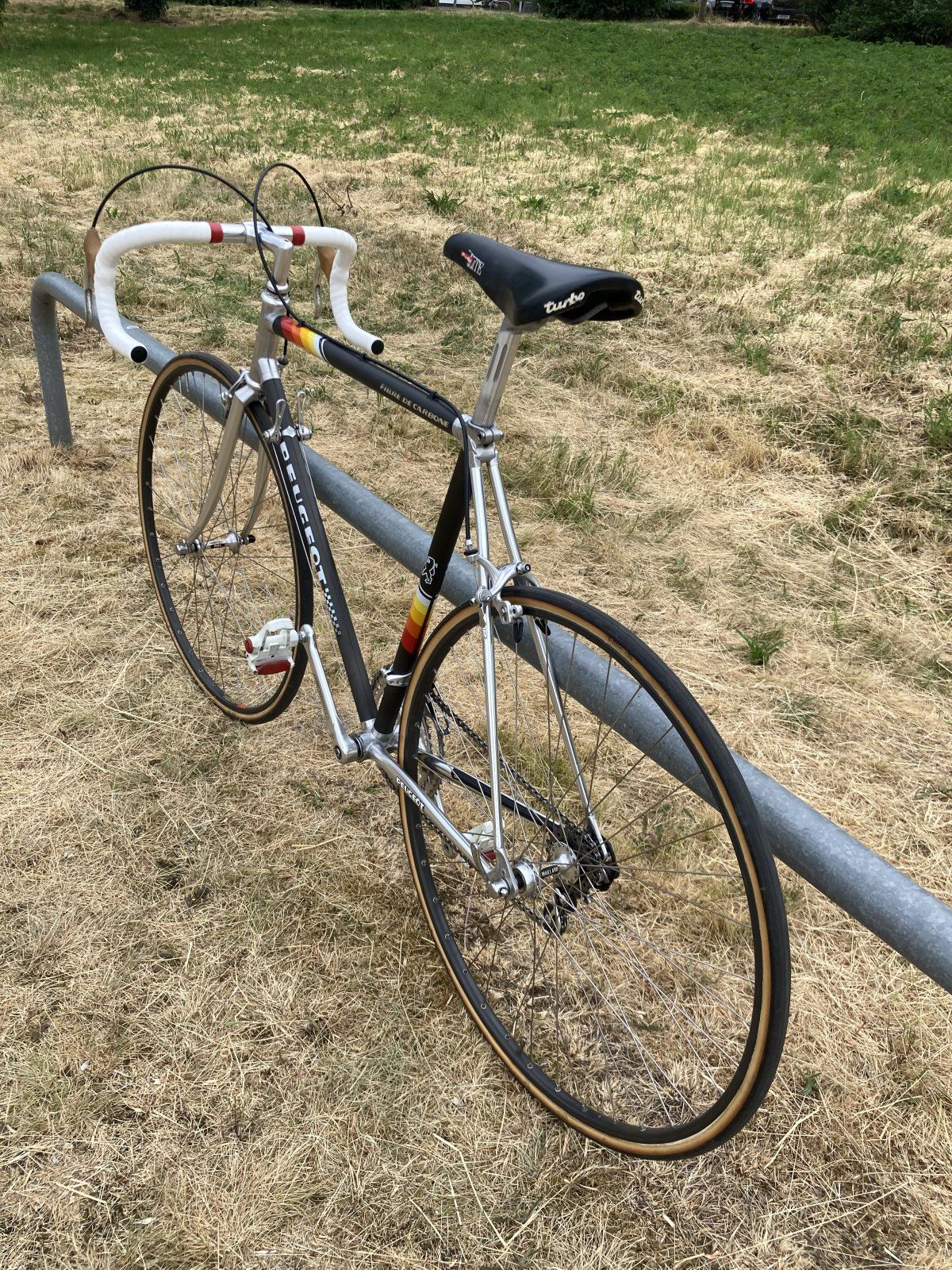 joo ... kenn ich natürlich, aber die beiden genannten PKN10 und PFN10 tauchen erst 1979 in den Katalogen auf und hatten beide schon Anlötteile für Kabelführung am OR und Flaschenhalter - hat meins beides nicht!Könntest es bei www.peugeotshow.com suchen aber ohne das Rahmenmaterial zu kennen wirst du es nicht genau bestimmen können. Denke es ist ein PFN10 falls es aus Vitus ist. Aus Carbolite hieß es glaube ich PKN10 und aus Reynolds hieß es nochmal anders...