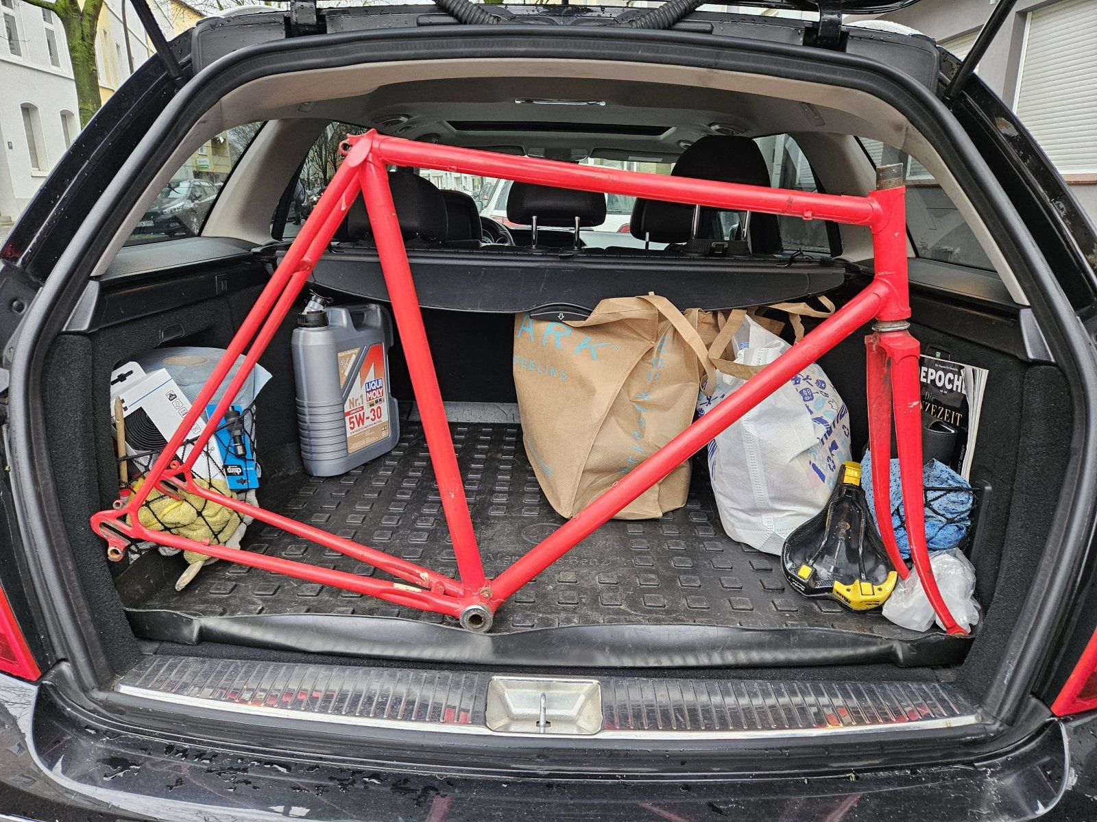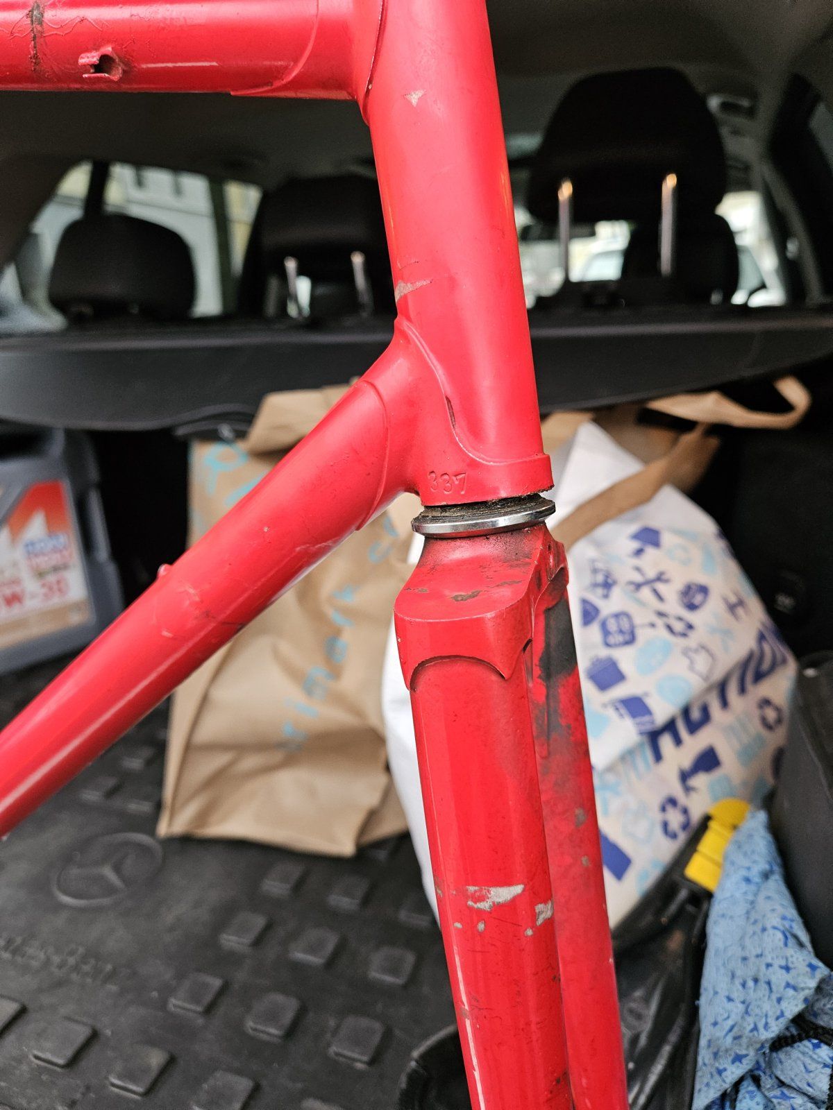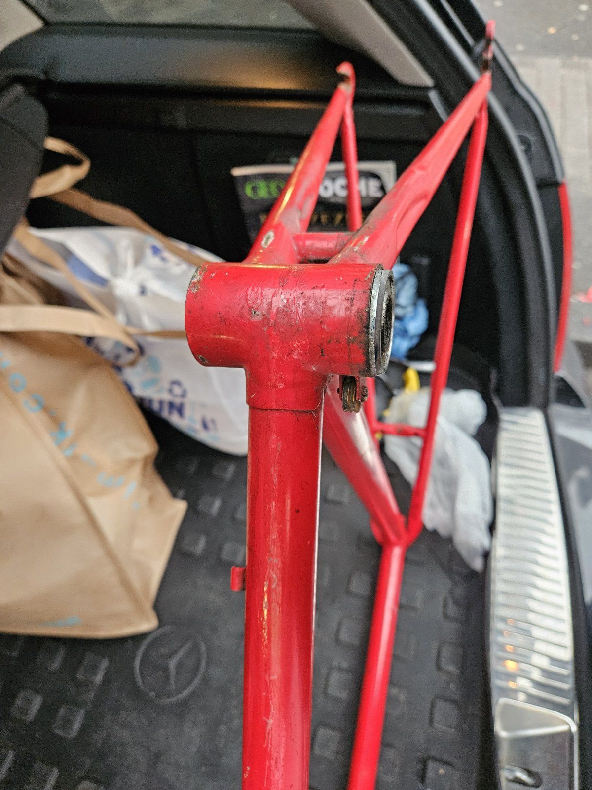 Den Rahmen hatte Ich auch gesehen Glückwunsch! Für den Preis ein guter Fang! Ich lehne mich mal weit aus dem Fenster...hat die Gabel eine Nut für die Nase vom Steuersatzspacer? Tippe tatsächlich auf einen umlackierten Rickert, kann mich aber täuschen... Rickert Experten vor :D