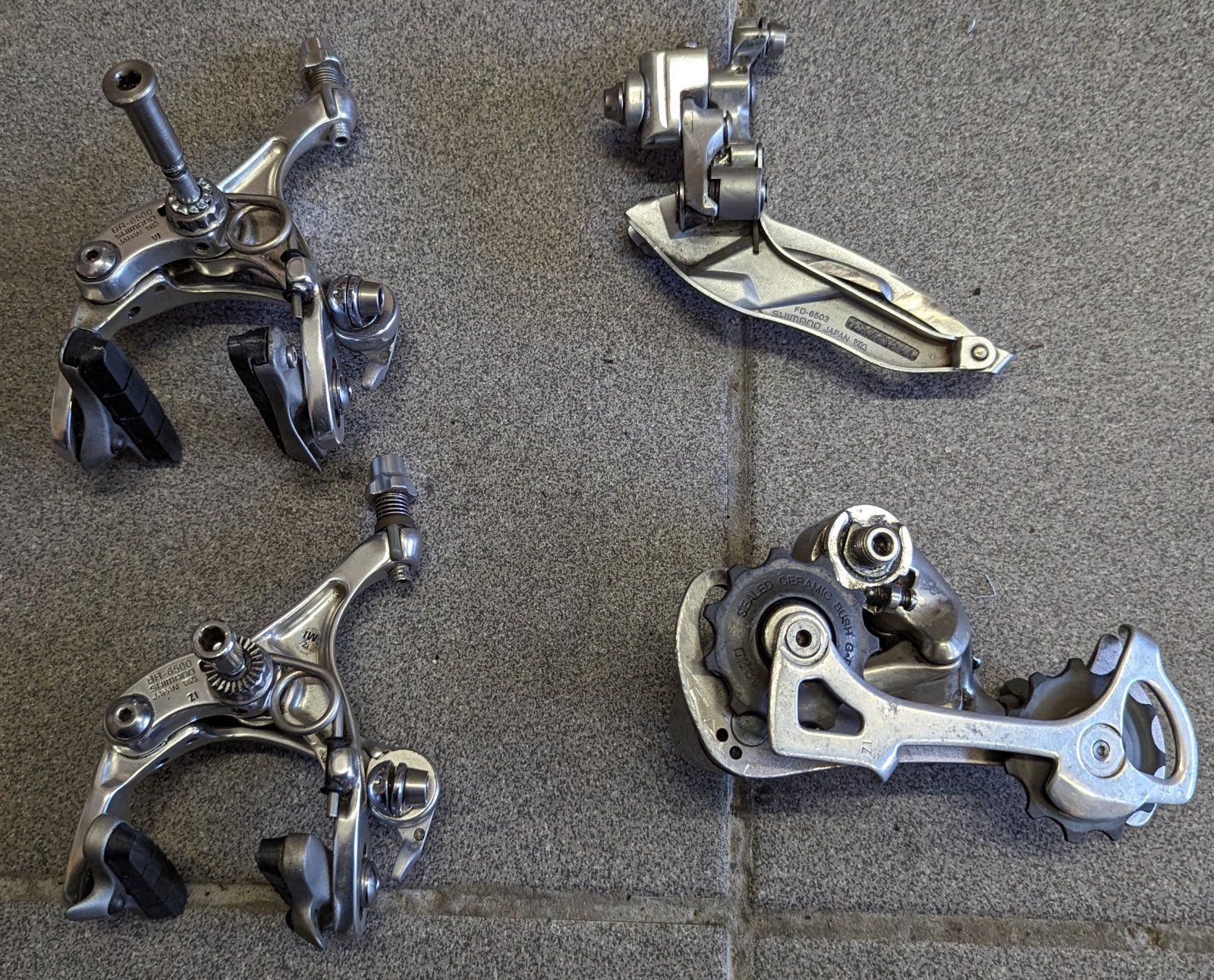 Bremsen BR-6500 (eine Zahnscheibe fehlt. Die lange Hülsenmutter brauche ich vorne am Koga, habe dann ne Campa übrig)