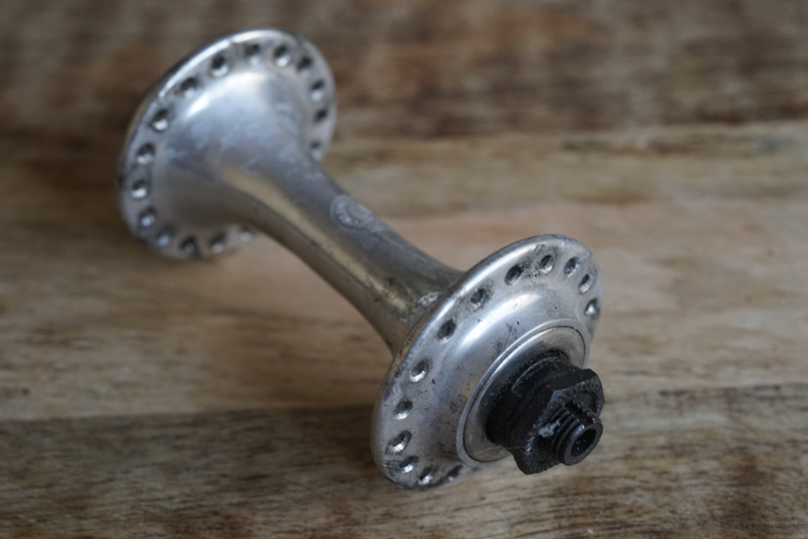 Eine einzelne Pelissier VR Nabe 36loch in sehr schön. Technisch wie auch optisch hübsch. Obs der orginal Schnellspanner ist weiß ich natürlich nicht.