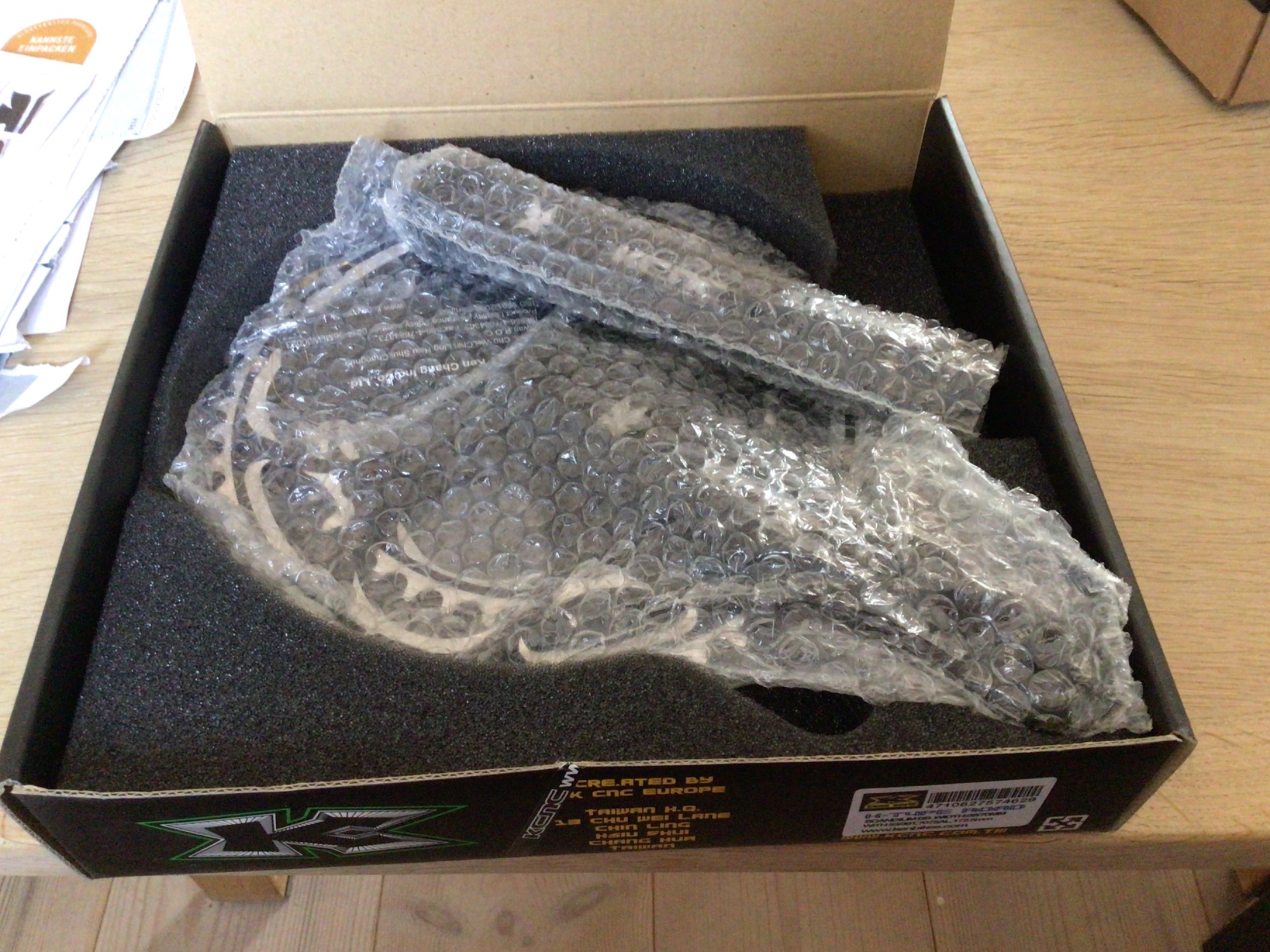 Beim groben Reinigen hat sich der Kettenstrebenschutz gelöst, darf also neu verklebt werden. Liegt bei.