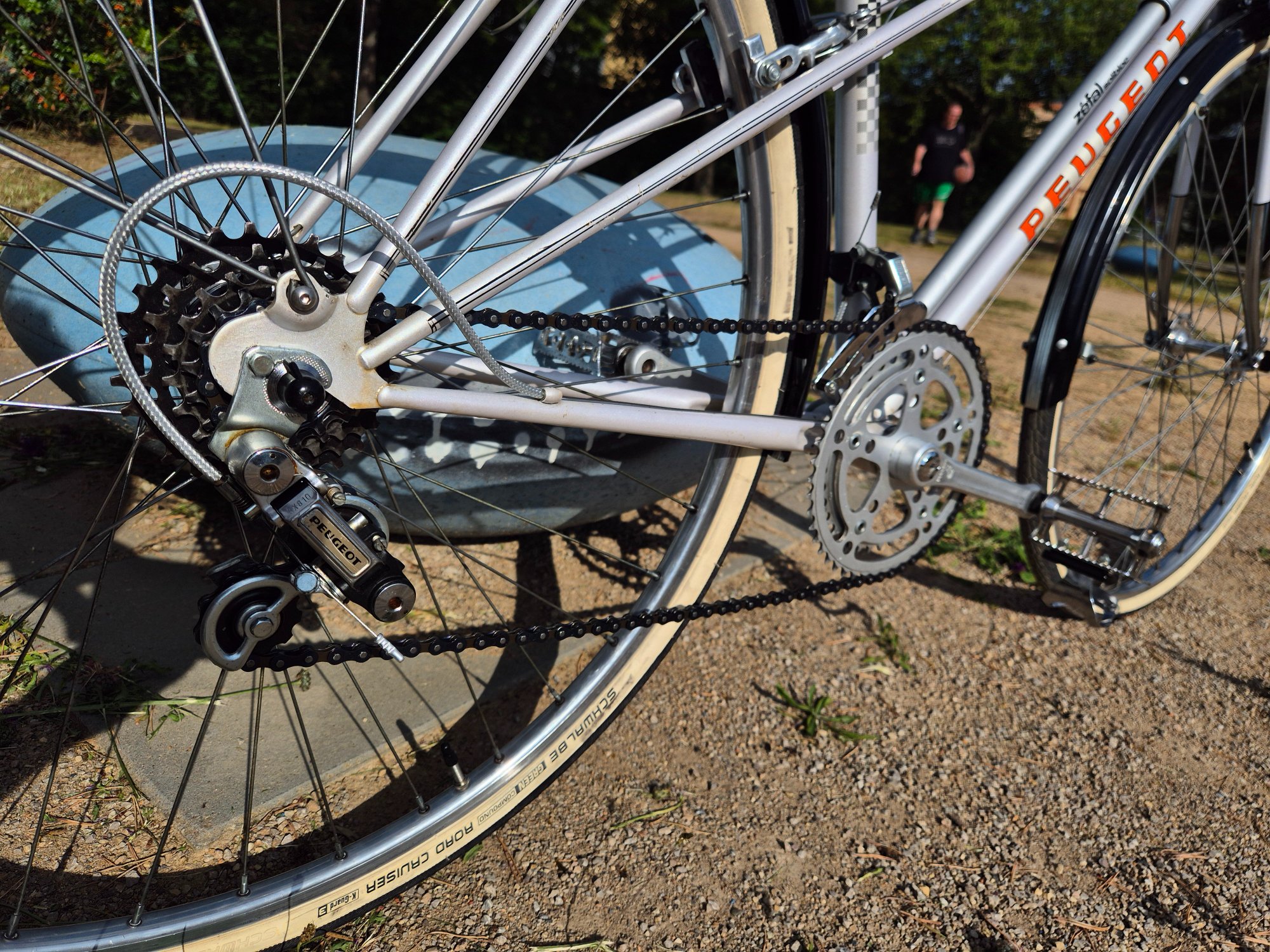 Das Set ist m.E. noch im recht guten Lackzustand, das Tretlager ist ohne Pitting, Lager und Steuersatz wurden neu gekugelt und gefettet.