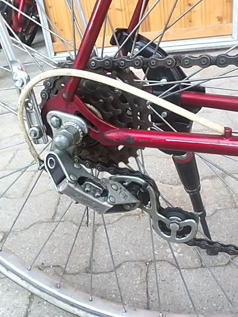 Das Laufrad wirst du wahrscheinlich komplett wechseln müssen, denn wenn etwas breiteres verbaut wurde, ist die Chance groß, dass es Kassette statt Schraubkranz ist. Einfach mal beides Googlen, dann siehst du den Unterschied. Ob das was wert ist, findest du wahrscheinlich auch eher in England raus. Hier tendieren die meisten wie vorher gesagt zu dem ungeliebten Sportrad für 50€. Das schließt aber nicht aus, dass es etwas (ein wenig) besseres war. Die blechenen Ausfallenden deuten auf einen einfachen Rahmen (oder eben ziemlich alt). Einfach mal googlen, was anderes machen die Leute, die dir hier schreiben (bei sowas) auch nicht. Es erkennt offensichtlich keiner, sonst hättest du schon eine entsprechende Antwort ;)
