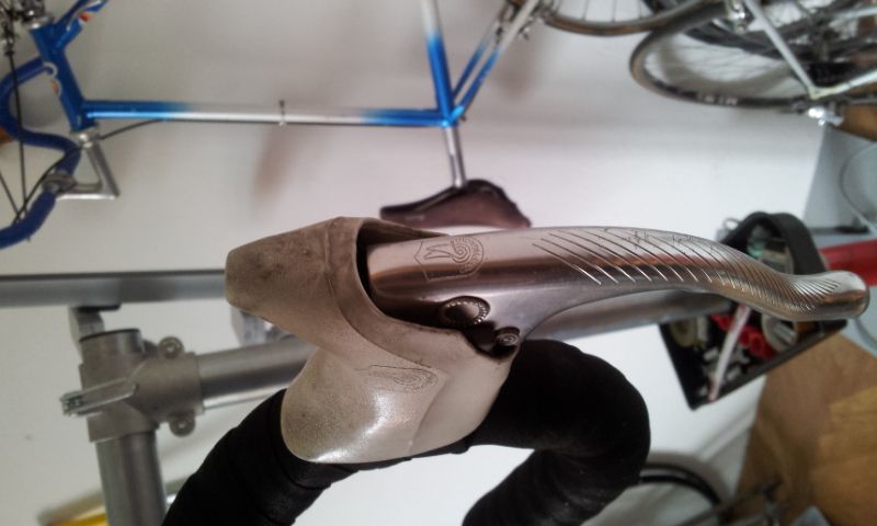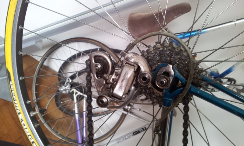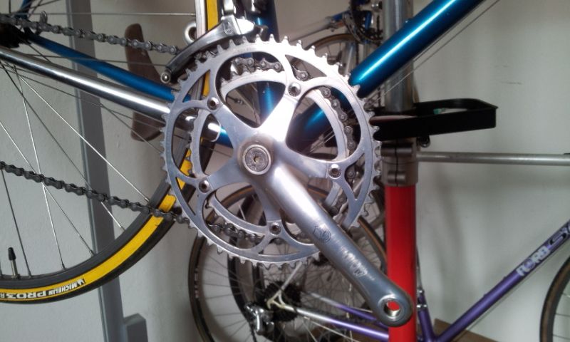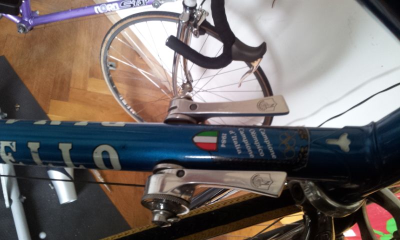 Vor allem der Vorbau ist sehr schön und die Griffgummis sind zwar spröde aber das Hellblau noch recht ansehnlich - auf den Bremsschuhen ist noch ordentlich Fleisch. Zwei Rollen hellblaues Benotto-Band würde ich der Lenker-Vorbau-Kombi beilegen. Der LRS läuft super Mavic Monthelery Felgen mit 6-Fach Schraubkranz mit quasi neuen Schlauchreifen (was günstiges von Vittoria) Es ist halt nicht Dura Ace und evtl. ist der Gebrauchswert höher als der Marktwert, dann Motte ich die Gruppe lieber ein und warte bis der richtige Rahmen dafür vorbeigetrieben kommt - also sagt mal was ihr so denkt ;)