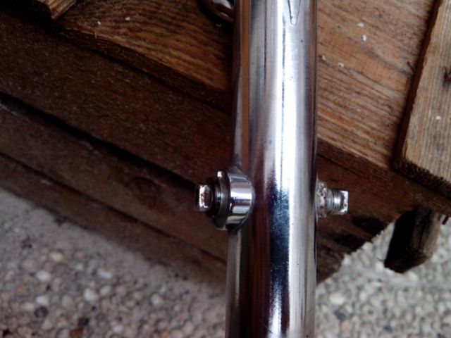 Ich täte den Rahmen entchromen lassen ( Beim Galvaniseur ) und dann hinterher vernünftig lackieren lassen , so sieht das zum wegschauen aus...