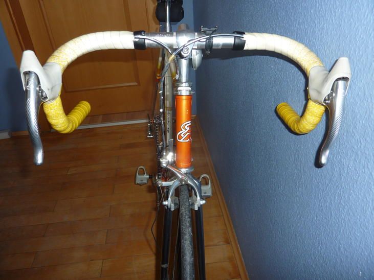 an dem rad wurde wohl leider ein wenig rumgebastelt, da es für ein colnago super eh schon recht untypisch ist, dass modolo bremsen verbaut wurden... "leider" (für den verkauf) ist nur eine campagnolo nuovo gran sport verbaut die das untere preissegment der damaligen zeit representiert hat. außerdem hat die kurbel zwar colnago kettenblätter, ist aber eine gipiemme, was den preis auch nochmal mindert. die platten reifen plus kleinigkeiten, zb. dass die sattelstütze eventuell nichts hochpreisiges ist, man den sattel nicht erkennen kann und die bremshebel keine gummis haben, werden den preis auch nochmal schmälern. die größe ist dann das ende der fahnenstange. hättet ihr das nötige werkzeug bzw know how würde ich euch raten den rahmen, der wohl ein columbus sl in gutem zustand ist, seperat zu verkaufen. könnte zwar dann in fixie hände geraten, aber mit dem risiko muss man leben.