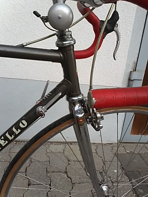 Die Ausfallenden sind mit "Brev Campagnolo" beschriftet, auf der rechten Zugführung am Tretlager steht ebenfalls Campagnolo, unter dem Tretlager steht eine 6 oder 9, ebenfalls innen am Ausfallende.