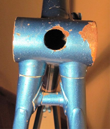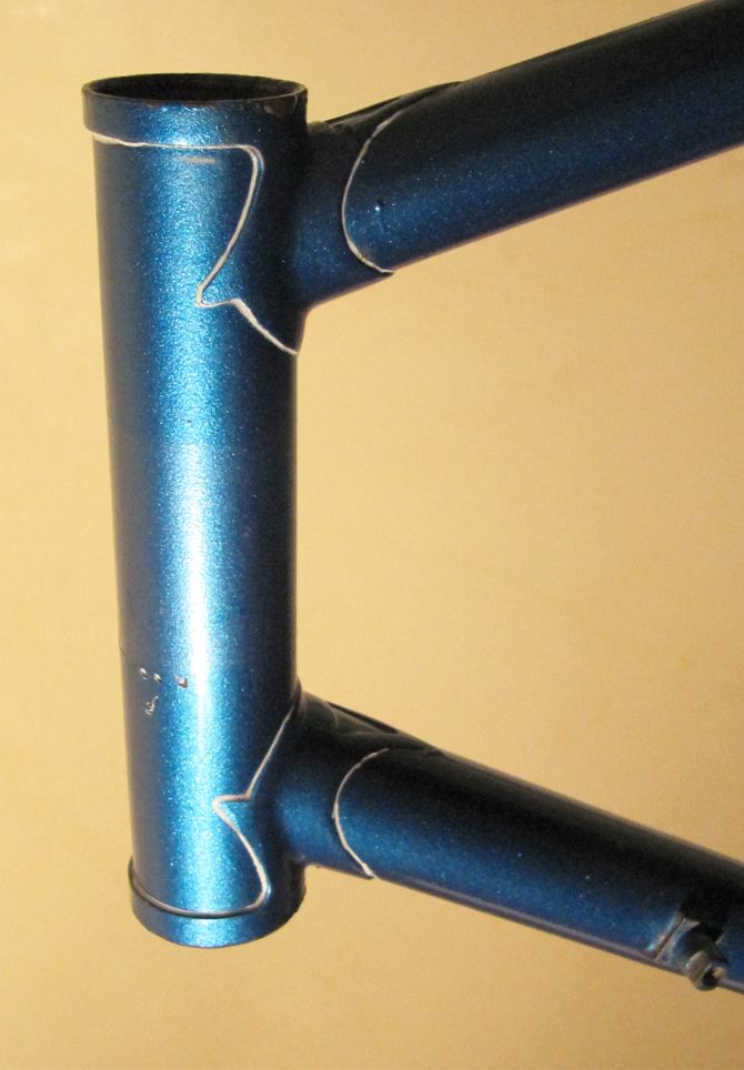 Abgesehen von der speziellen Ausführung mit Altenburger-Ausfallenden fallen mir zwei Dinge besonders auf. Zum ersten erkenne ich hohe Übereinstimmung mit frühen „Le Taureau“-Rahmen insbesondere in Farbgebung und Art der Lackierung.