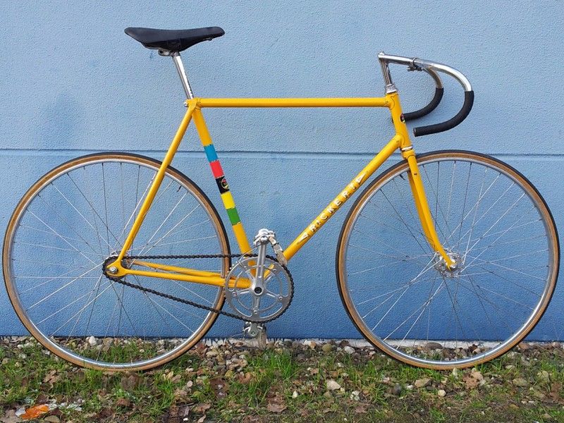 Meins auch, heute die erste kleine Probefahrt gedreht, macht richtig Spaß. An das aussehen der Huret Schaltung muss ich mich wohl noch gewöhnen, das Ding soll was richtig gutes gewesen sein, so schaltet es auch, super.