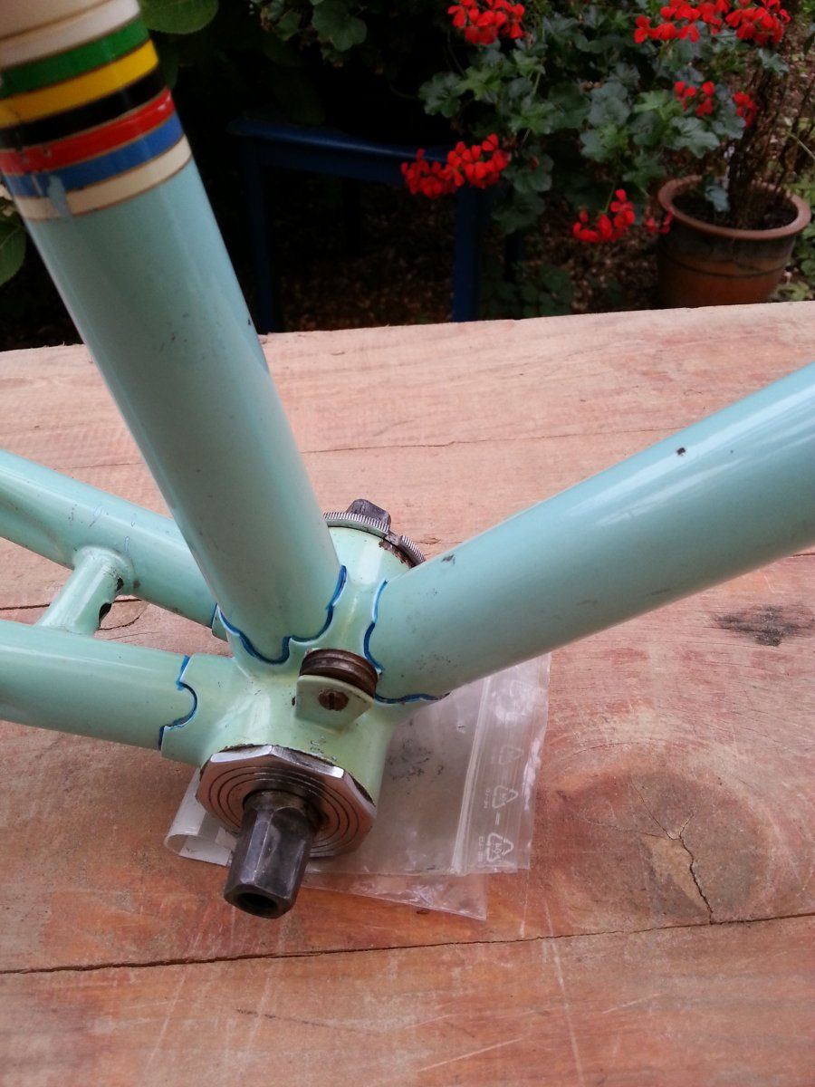 Ganau an die Kurbel habe ich auch gedacht, als ich das ganze Plastik-Simplex-Zeugs gesehen hatte. Eine 63 oder vielleicht auch noch die 93 gehen alle, auch eine TA ProVis oder die dreiarmige Professional wären auch nicht verkehrt - man sollte aber auch das richtige Lager dafür haben. Vielleicht ist das ja sogar noch im Rahmen?Schöne Stronglight 49D würde ich montieren .