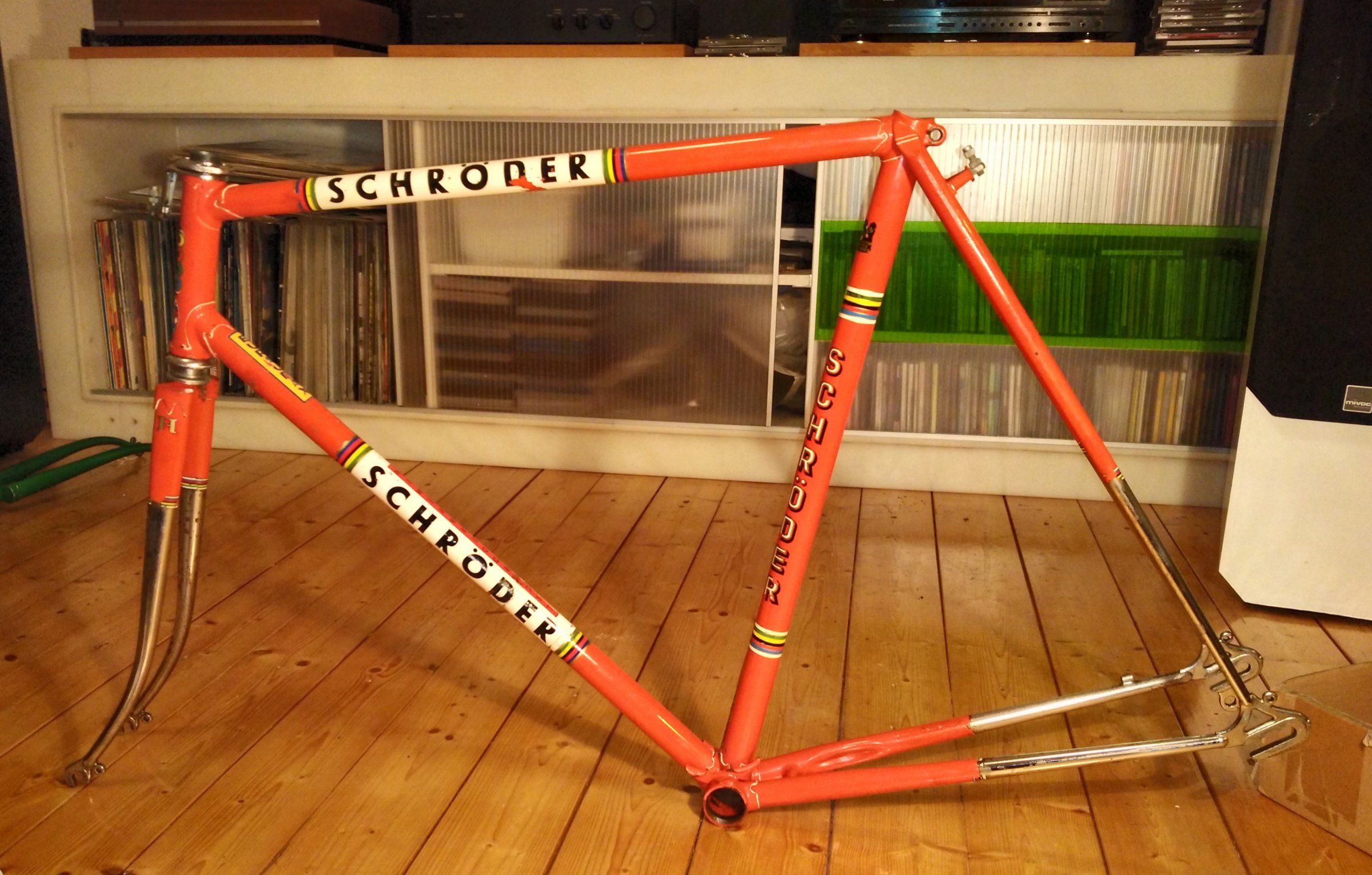 Ein richtiger Neuzugang ist es nicht, denn ich habe es schon im letzten Spätsommer erstanden. Der Anbieter wollte es nur im Doppelpack verkaufen, und so ist neben dem gezeigten Schröder auch mein erster Japaner, ein Centurion Semi-Pro, Teil der Sammlung. Die Räder haben wohl längere Zeit in feuchter Atmosphäre verbracht, bei beiden war der Chrom deutlich angerostet. Lange Zeit habe ich mich gedrückt, doch heute hatte ich keine Ausrede mehr und habe ich mich ans Säubern und Entrosten gemacht. Letzte Woche hat
