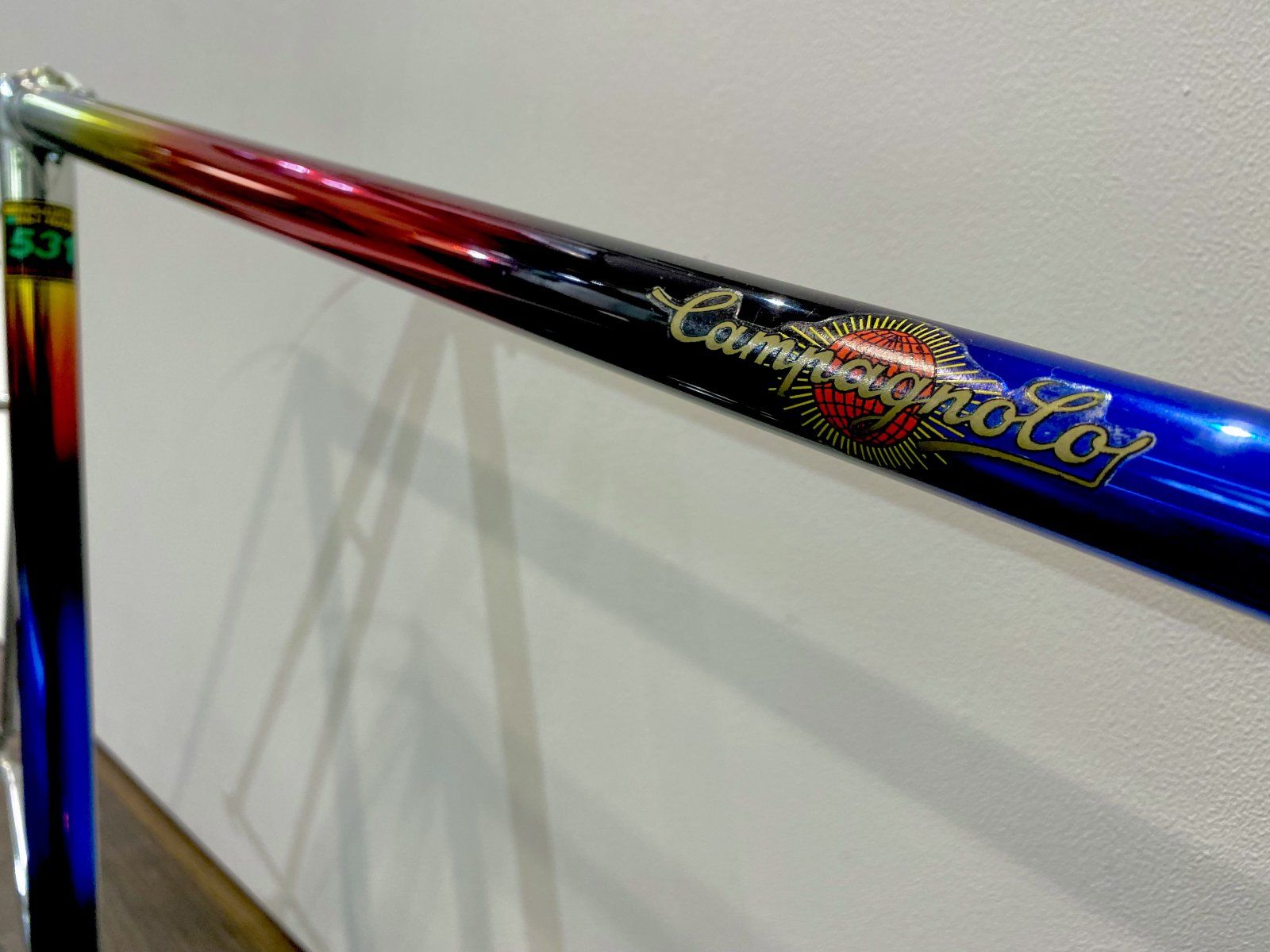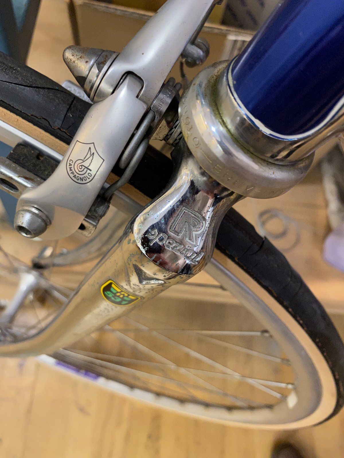 Lenkerband sind jetzt neu. Das genaue Alter des Rades ist mir leider noch nicht bekannt. Vielleicht könnt ihr helfen, ebenso ob die Ausstattung jetzt wohl dem Auslieferungszustand entspricht. Wie alle Räder wurde es sehr sehr schonend bewegt! Die ersten 50-100m vorm Haus waren nicht geteert und so wurde es dort immer getragen, so erinnere ich mich. Einmal wurde es auf einer geführten „Amateur Tour Reise“ in Griechenland oder Italien gefahren. Dort, so erzählte er mir, war auch ein älterer Profi zur Unterstützung mit dabei. Dieser habe ihm bei einer Panne geholfen (neuen Schlauchreifen aufgeklebt) und anschließend wieder ans „Feld“ herangeführt…. Dieser Profirennfahrer, dessen Name ich leider nicht kenne (hier geht gerade einiges durcheinander), habe sich sehr begeistert um sein Rad gekümmert und gefragt, wie es dem Hugo denn gehe, er hätte gar nicht gewusst das er immer noch Räder baut…. Das muss zweite Hälfte 90ziger gewesen sein. Auch über eine Handvoll Alpenpässe wurde das voll verchromte Rad mit