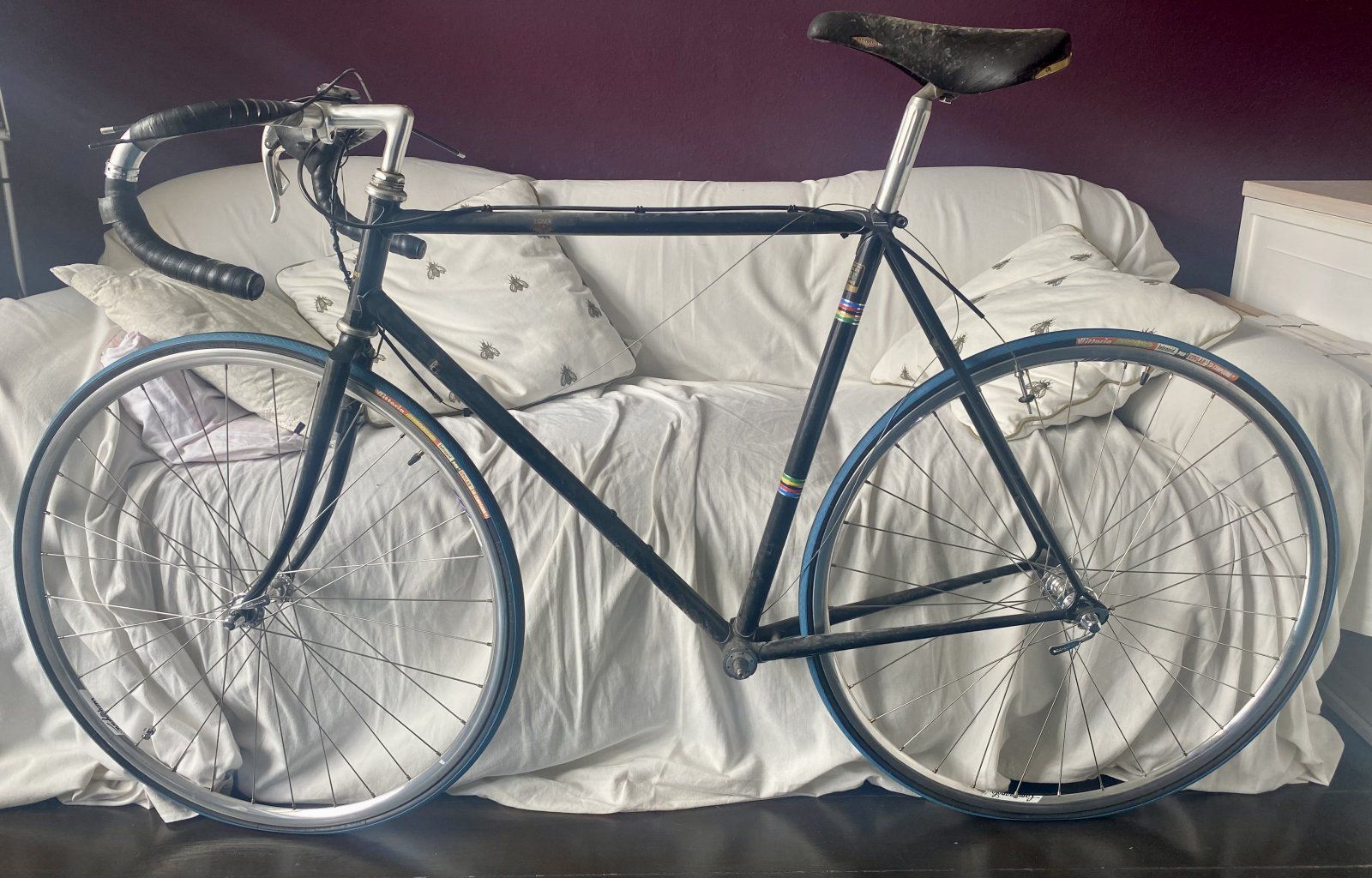 (Die mischmasch Räder mit Campagnolo Felgen und Shimano Naben sind erst mal nur vorläufig fürs Foto montiert aber mal sehen…)