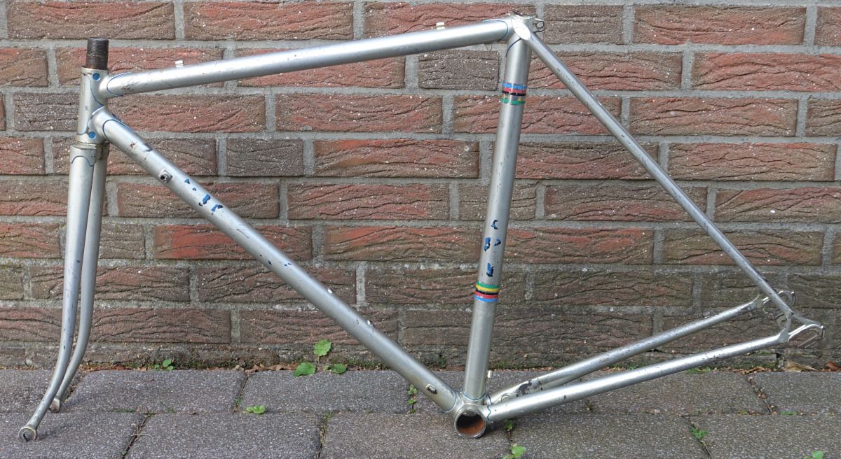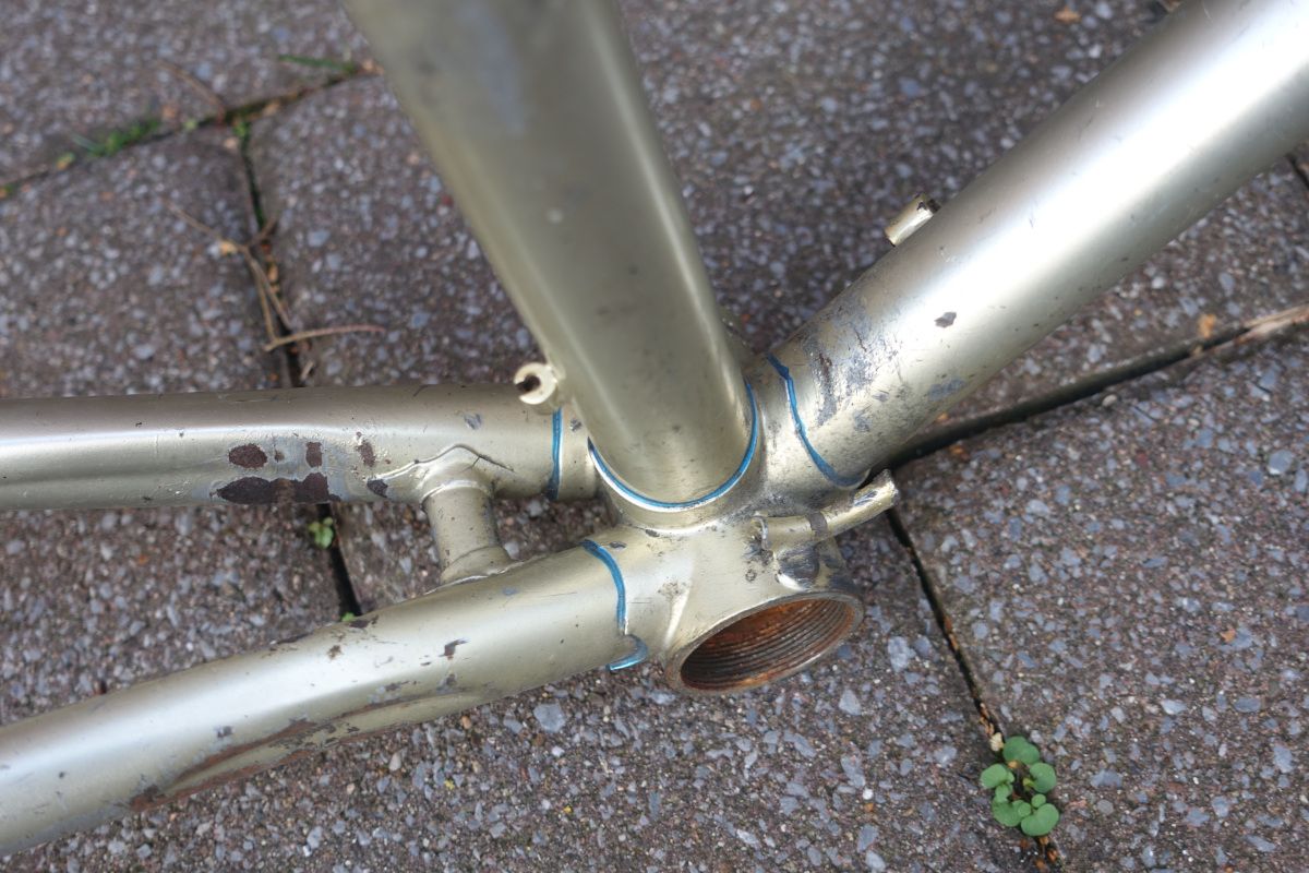 Sattel kommen neu, ansonsten macht der Rahmen, bis auf die abgeschrammelten Decals nen guten Eindruck, keine Delle, keine Stauchung, ne 53er Höhe find ich gut, hab im Alter das Gefühl, dass die 54 von früher irgendwie gewachsen sind..