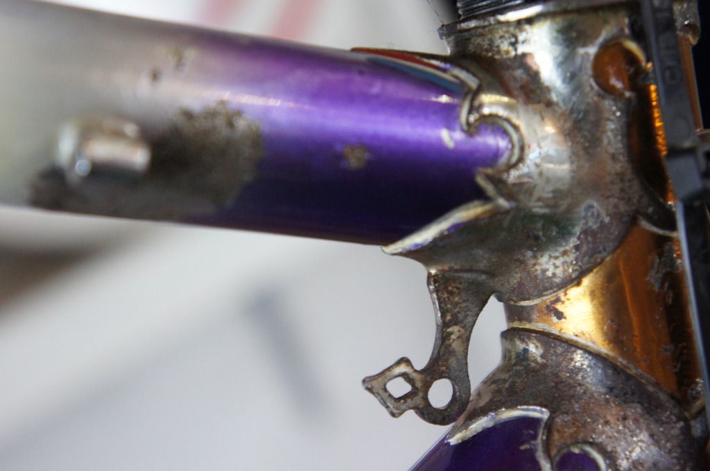 Leider waren viele viele Teile (unfachgemäß) getauscht worden und auch die Gabel war/ist hinüber (Ober und Unterrohr sind aber gerade).
