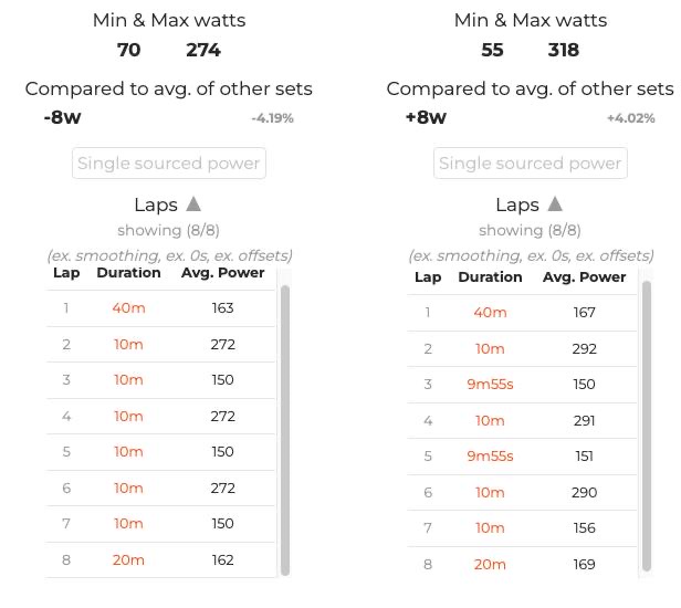 Meine Freundin hats an dem Kick Core Setup praktisch in ihren Wattbereichen nachstellen können, zwar ein anderes Workout aber die rechte Seite ist immer 9-12% drüber.