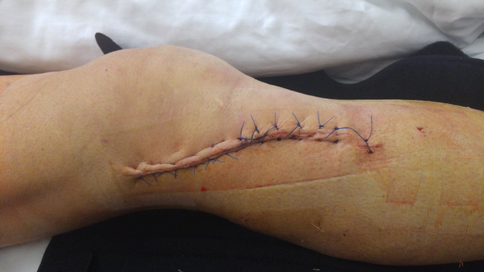 Ich dachte nur, wenn nicht nur Haut, sondern auch Fleich vom Asphalt weggeschliffen wurde, zumal der Schorf eine ganze zeitlang konkav nach innen geformt war-ich konnte den kleinen Finger reinhalten.Nö. Was will man an einer Schürfwunde auch nähen, ist ja keine Haut mehr da