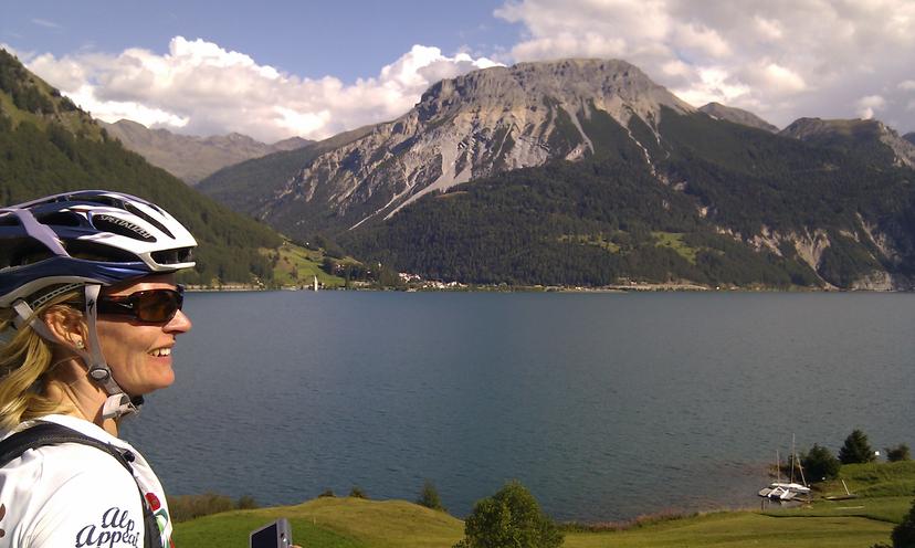 3. Tag:Nach unserer Übernachtung in Livinio, auf 1850m, ging es morgens los, bei Regen. Wir fuhren in Richtung des Tunnels, der uns in die Schweiz bringen soll. Durch den Tunnel fährt in der Hauptsaison ein Bikeshuttle, sodass wir die Tunnelfahrt schön gemütlich im Bus hinter uns bringen können. Auf Schweizer Seite im Engadin wird das Wetter immer besser und wir können die Regenklamotten bald ausziehen. Und zum Schluss wird es sogar wieder bis 27 Grad C. arm. Das Engadin fahren wir Richtung Landeck ab. Ab Landeck auf dem Inntal - Radweg zurück nach Imst. Mit 130 km war das die längste Etappe.