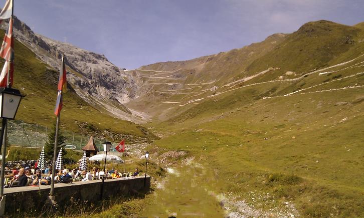 2 Tag. Nachdem wir erst einmal 2 Schläuche geflickt hatten, ging es in Richtung Stilfser Joch los. Die Königsetappe stand an! Der Stifser- Bike Tag hat den Vorteil, dass du ohne motorisierten Verkehr hinauf auf das Stilfserjoch fahren kannst. Hat aber auch den Nachteil, dass das ca. 5000 andere Radler genau so toll finden. Mir sind jedoch 5000 Radler lieber wie 100 lärmende Motorräder. Die bekamen wir dann auf unserem Weg, weiter nach Livinio zu genüge zu Hören. Mit 3200hm war das, bei bestem Wetter, die Etappe mit den meisten Höhenmeter.