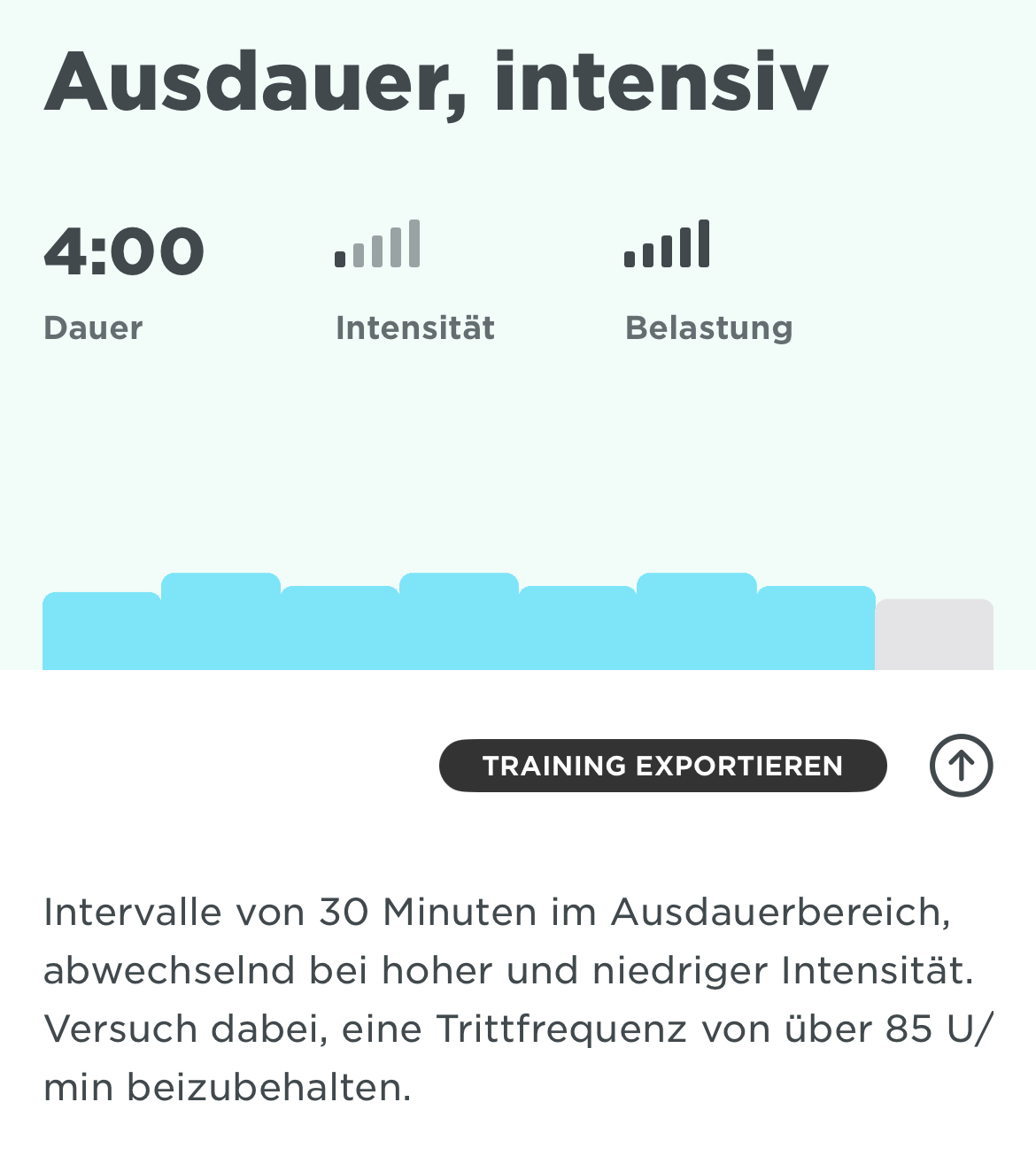 Morgen habe ich Intensive Ausdauer auf dem Plan das ganze sieht so aus: