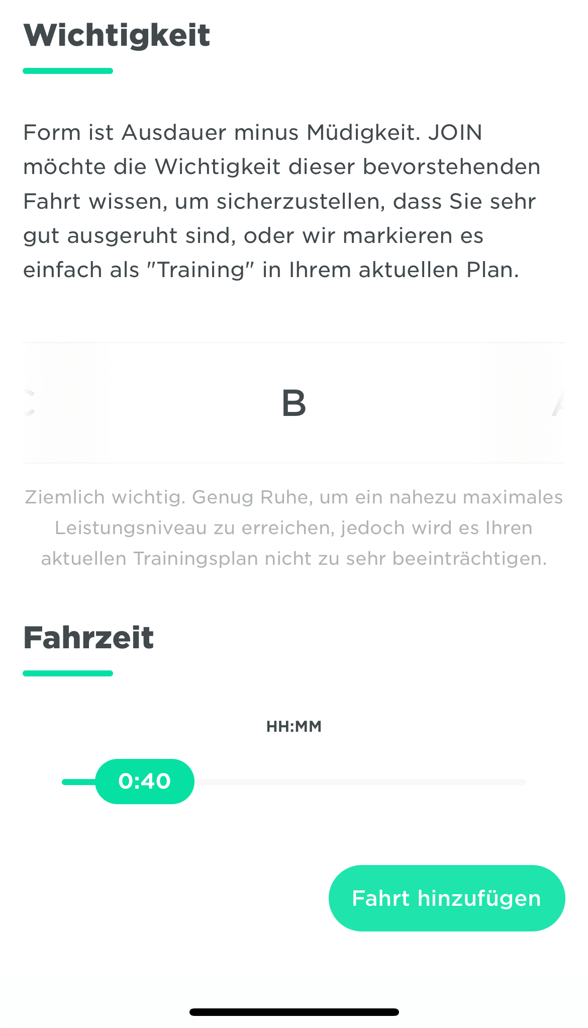 Als richtigen Wettkampf kannst du aktuell tatsächlich nur ein Event angeben, für das deine Peak-Performance dann aufgebaut wird. Du kannst aber am Anfang jeder Woche eine oder mehrere Fahrten am Wochenende angeben, die dann in deinen Trainingsplan integriert wird. Dieser kannst du dann auch eine Priorität von A bis C geben: