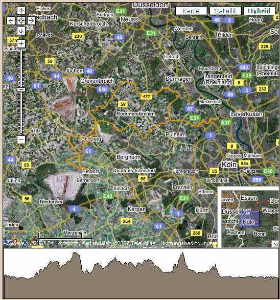 Ja - aber wenn man aus Dellbrück kommt, reicht das zum Ein- und Ausrollen. Genaue Kilometer kenne ich auch noch nicht. Aber es sollten so ca. 50 km insgesamt sein.