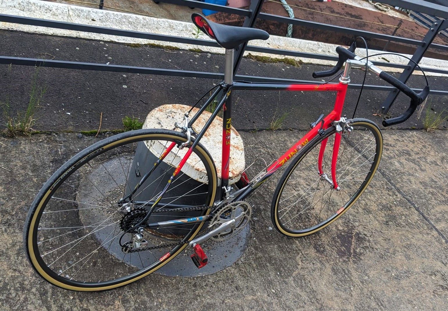 , das durchschimmernde Pink ist so gewollt, solche Jahrmarkslackierungen gehören bei Zunows zum guten TonWir sollten die Zunows nochmal ausführen bevor der Sommer vorbei ist…Der stammt tatsächlich aus ebay KA, ist aber schon etwas länger her. Der Verkäufer hat mir sogar noch unaufgefordert die 105er Anbauteile dazugepackt, die habe ich dann günstig weitergegeben und konnte noch jemand anderen damit glücklich machen. Den Rahmen wollte ich haben, seit ich den vor etlichen Jahren mal im Tour Forum gesehen habe (Aufgebaut mit einer C-Record Century Grey Gruppe).