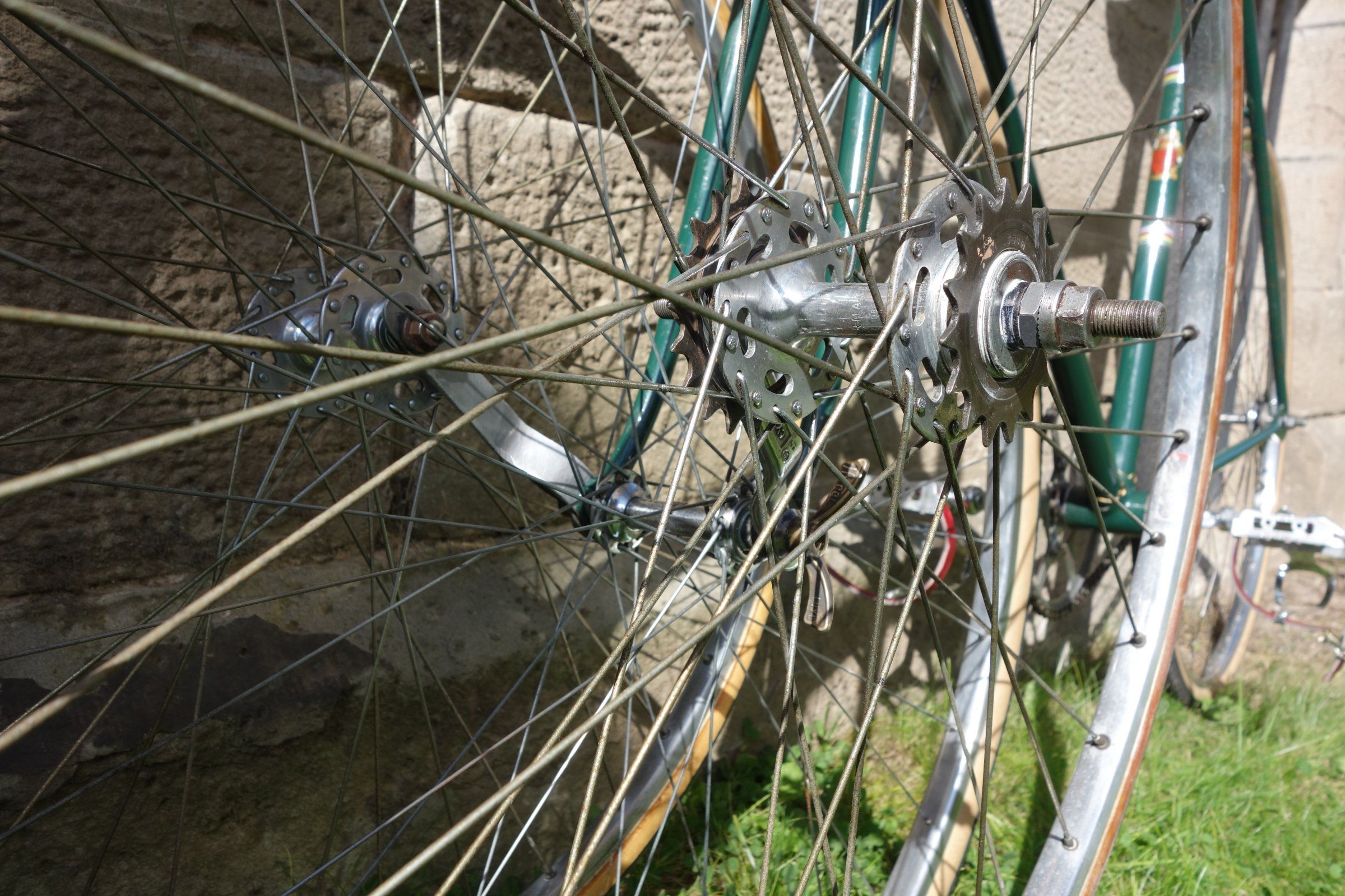 Zum Aufbau hatte ich einen Fred, danach wurde noch die Innenlagerwelle auf eine originale Bayliss&Wiley Achse umgestellt und der 27er LRS gefunden mit klassisch englischer 32/40 Speicherung und Bayliss&Wiley Naben mit unbekannten Drahtreifenfelgen aus den 50ern.