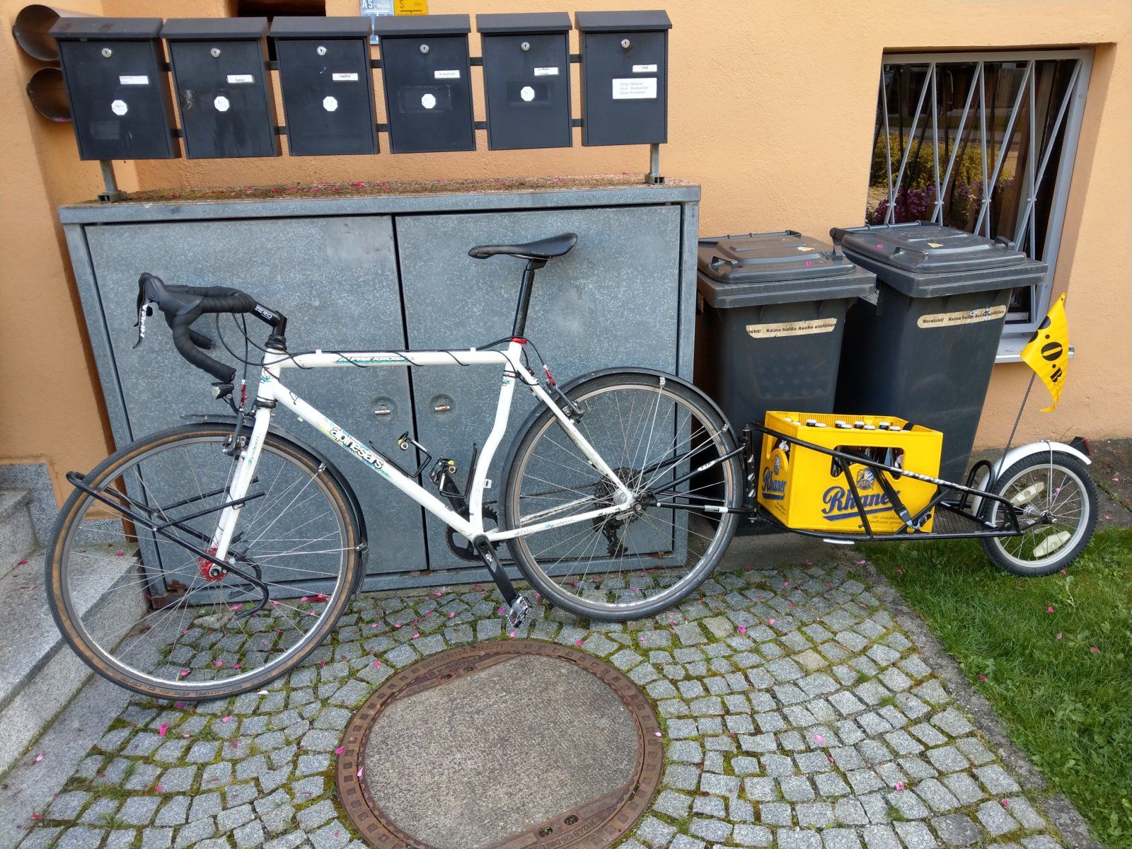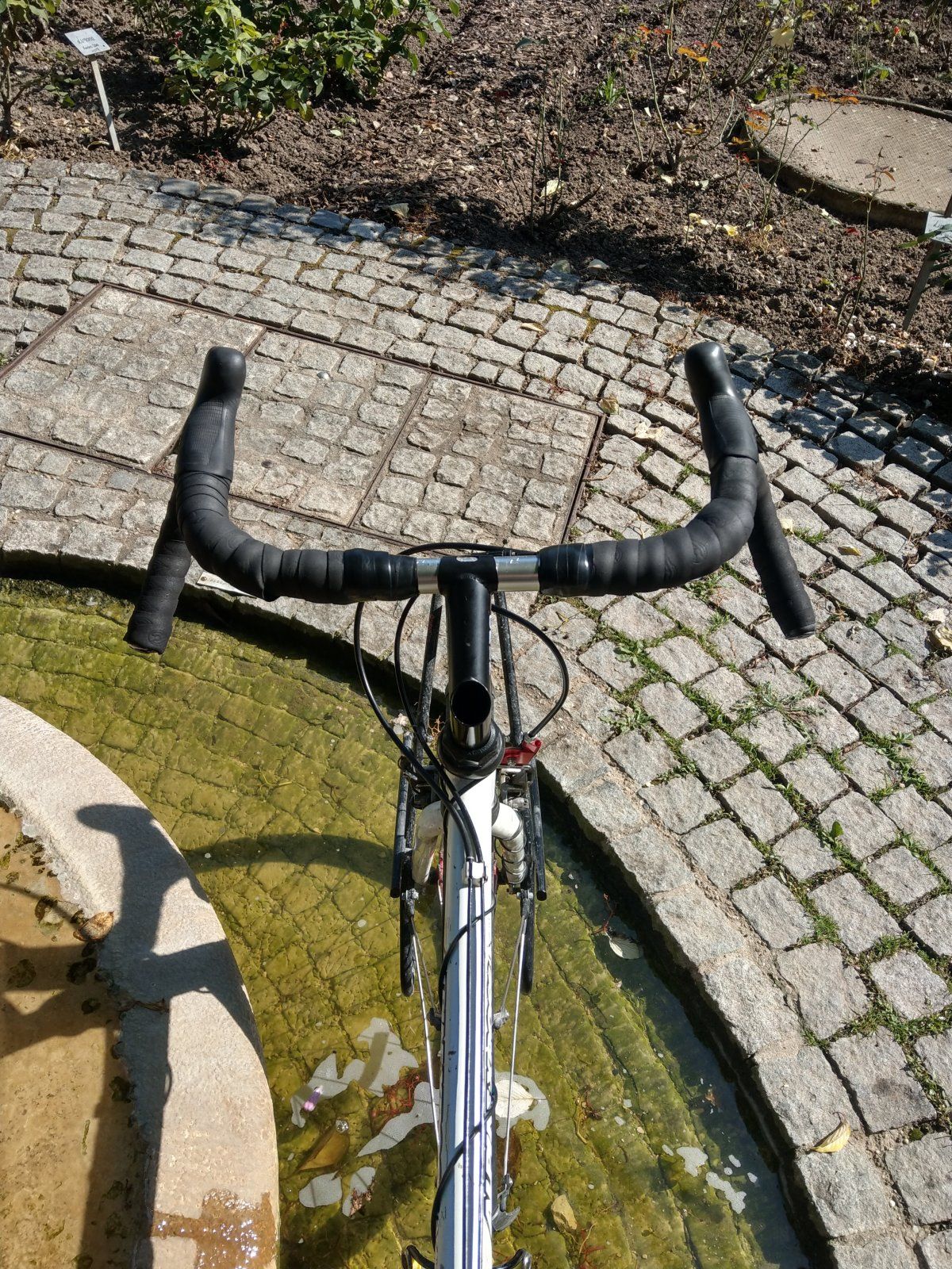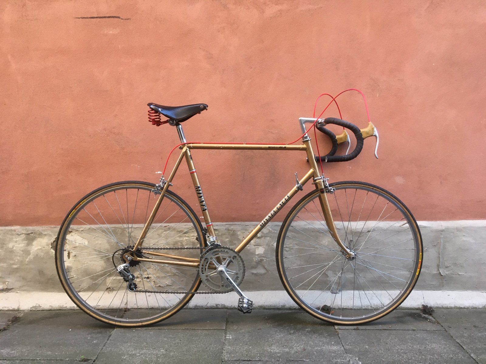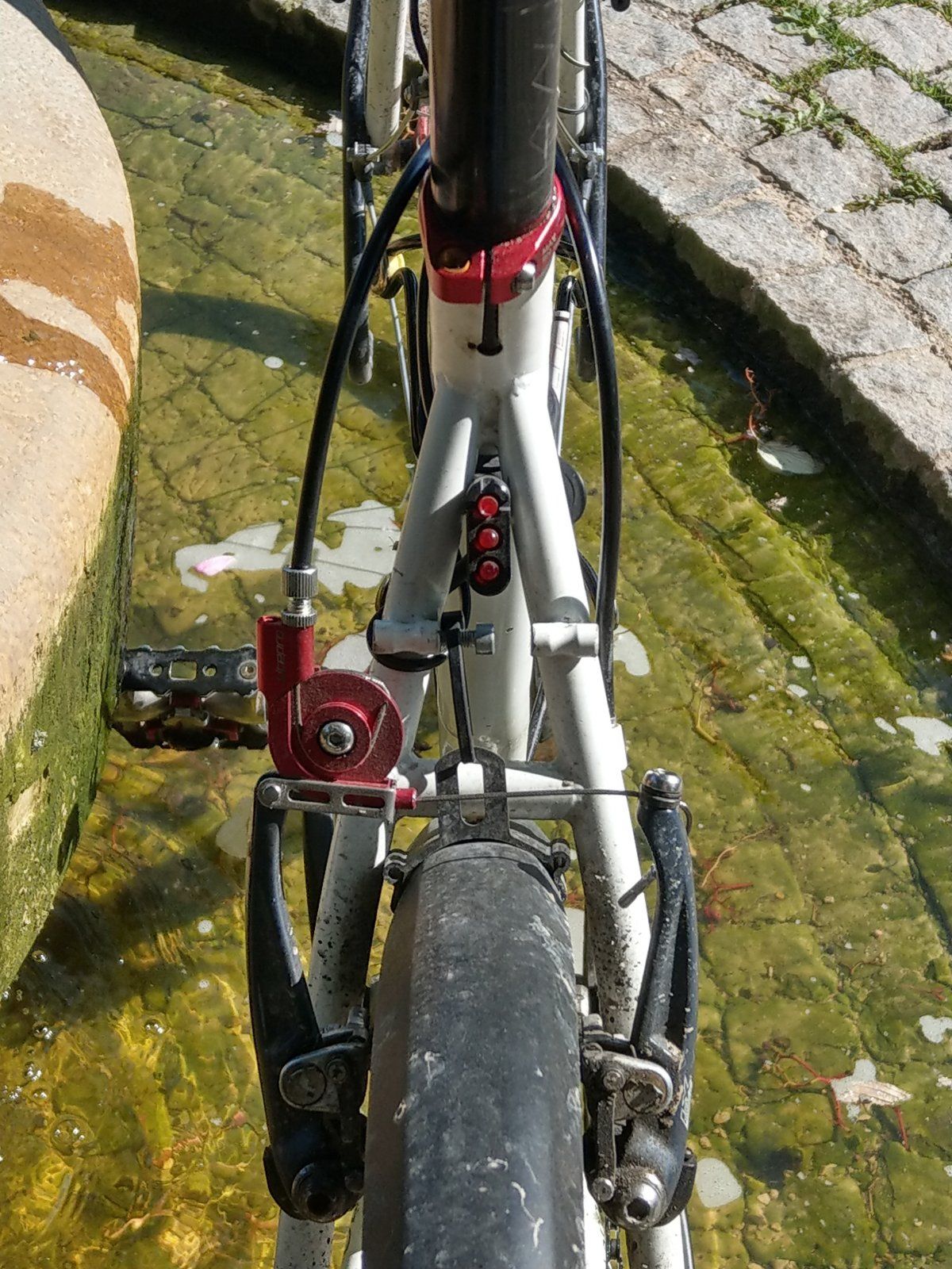 Dann werfe ich noch meinTrainingsrad für die AbendrundeFixie mit in den Ring. Sehr qualitativer Bahnrahmen von Fauss aus Köln aus den 1950s ... (@derMicha besitzt (?!) ein Bahnrad in Original Lackierung mit einem Zähler Unterschied bei der Rahmennummer) ... Hauptrahmen (Hinterbau wohl auch) komplett aus Reynolds 531 ... schön mit weißem Zuckerguss ... Gabel hab ich wegen Bremse von Diamant genommen (auch Bahn, aber von nem Fixieteur gebohrt) ... sehr funktionale und wertige Teile (Cinelli, Campagnolo, Stronglight, usw) ... Highlight ist auch das "Lenkerband" mit Dinos drauf...