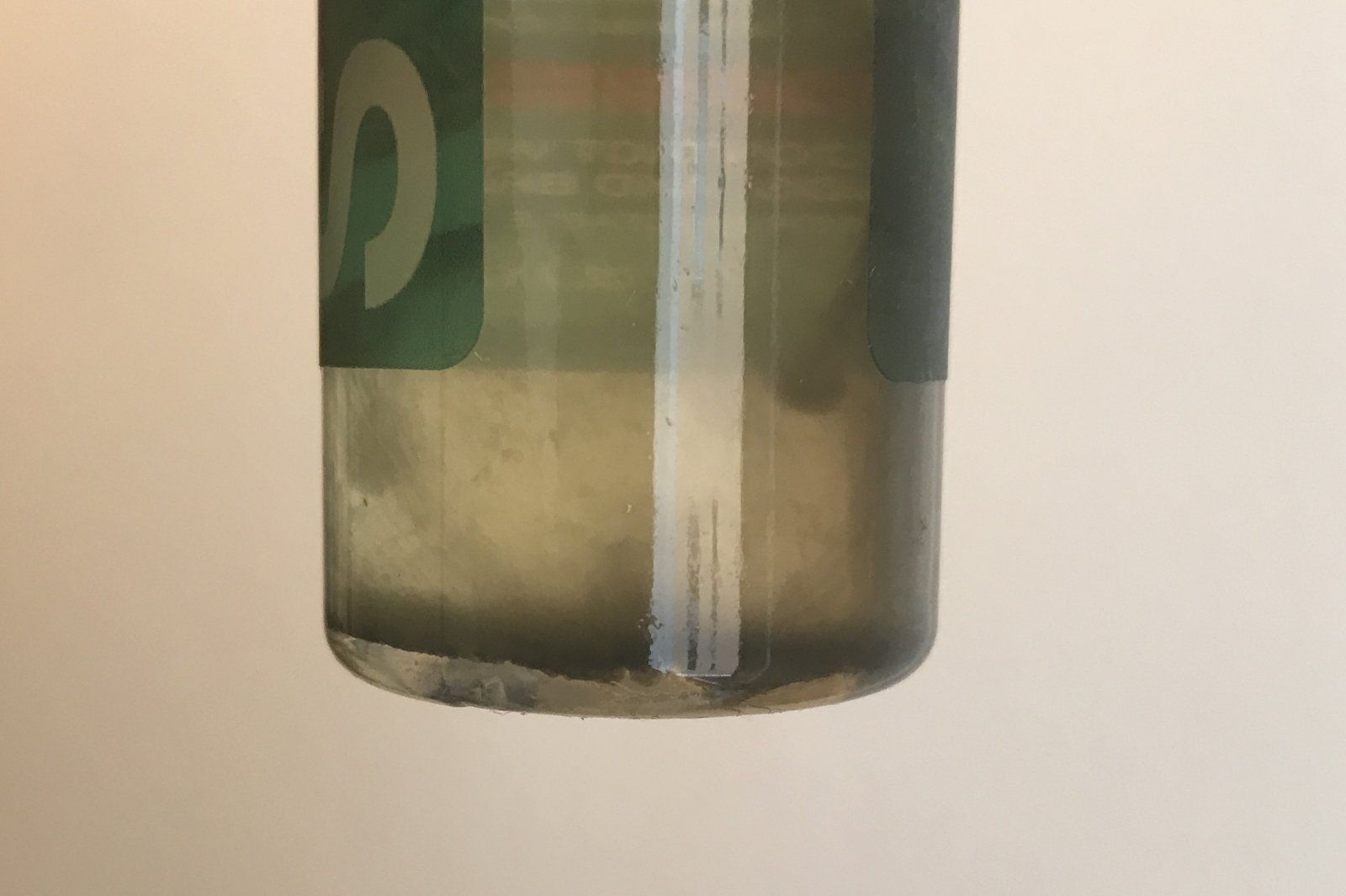 - bereits nach 1 fabrikneuen Shimano-Kette ist der Chain Stripper heftig trübe -> selbst zweimaliges (!) Filtern durch FFP2-Maske und danach noch Kaffeefilter (siehe Bild) ändern nix dran, das Zeug bleibt trübe. Bezweifle, ob ich damit noch ne zweite Kette fettfrei bekomme (siehe Bilder 2 + 3, das letzte Bild ist 2-fach gefiltert)