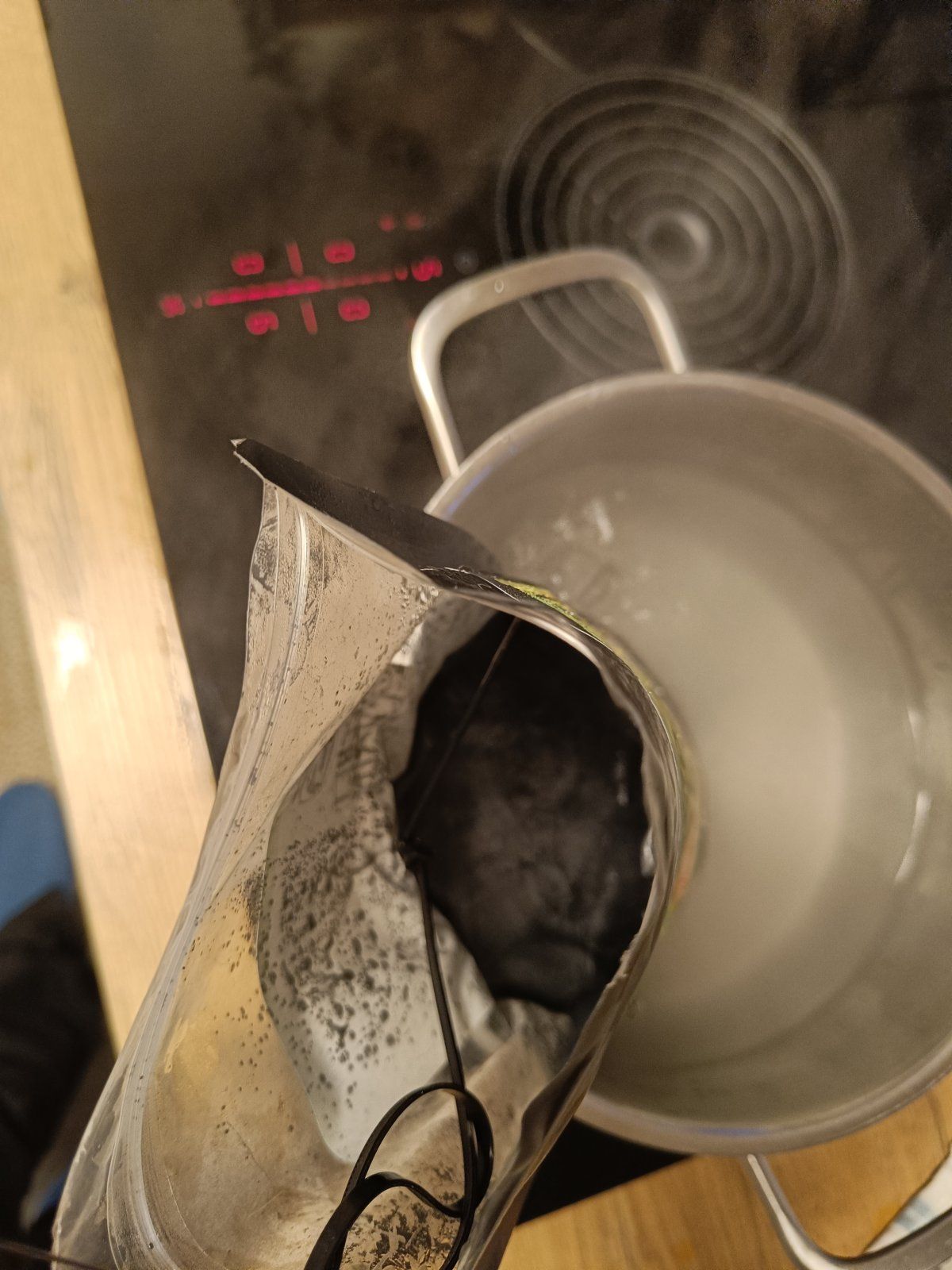 1. Kann ich einfach direkt am Anfang die Kette in die Tüte packen (Wachspellets noch hart), dann ab mit der Tüte ins Wasserbad und das Wachs schmelzen lassen mit der Kette drin? Oder darf Kette erst rein, wenn Wachs flüssig ist?