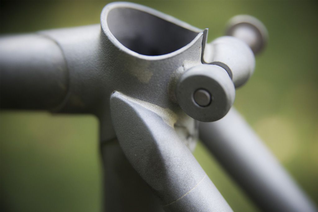 Die Cantisockel stehen extrem nahe zusammen (passt nur eine Rennradfelge dazwischen), sodass aus den Cantis schon beinahe Froglegs wurden. Und das Zugdreieck ist sehr, sehr flach.