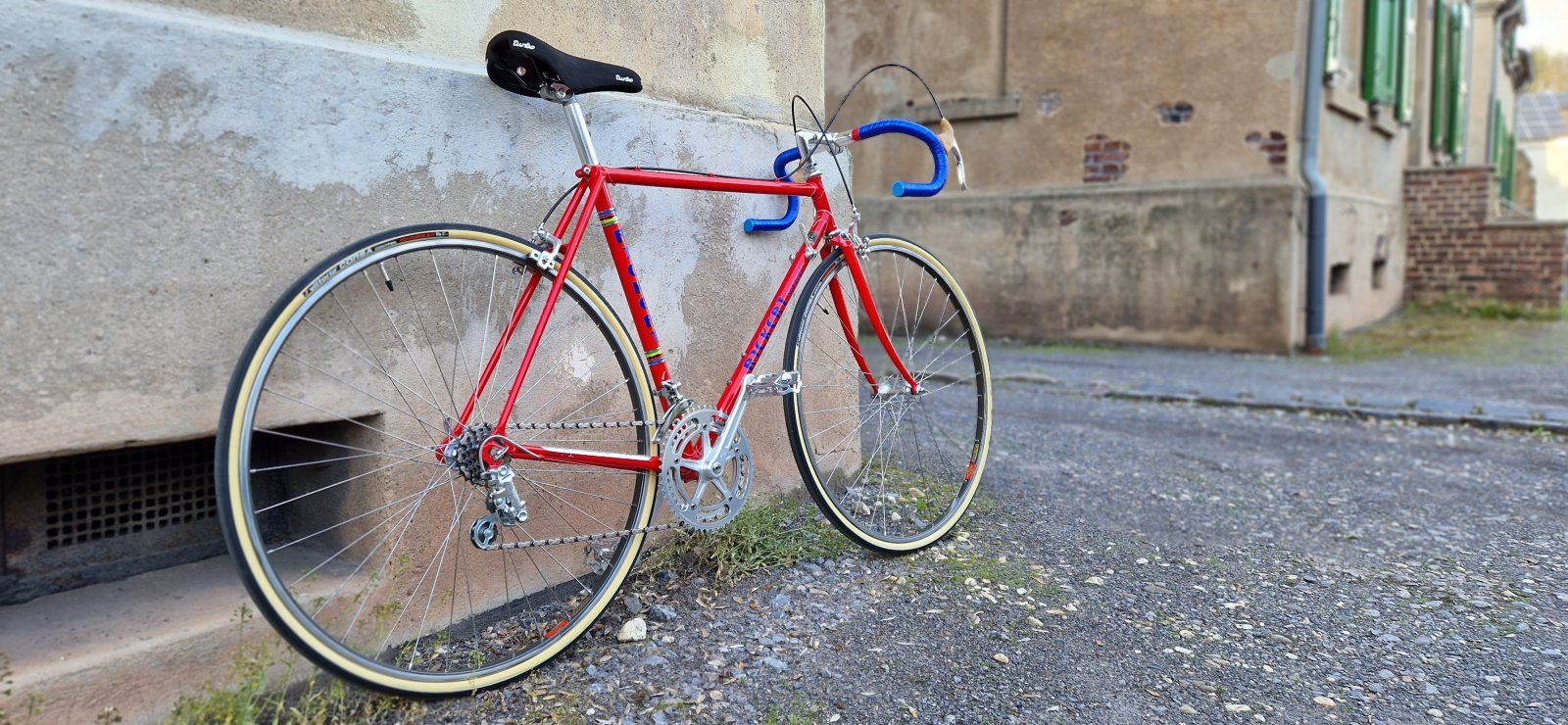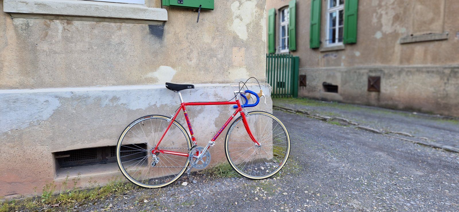 Heute stelle ich Euch mein Rickert spezial Rennrad aus meiner Jugend vor. Das Rickert ist ca Bj. 1978. Lackiert in Hugo Rickert's Lieblingsfarbe rot. Einfach nur rot. Kein rot-metallic Lack, keine verchromte Gabel oder Hinterbau. Einfach ein schöner roter sauber verarbeiteter Rahmen mit blauen Decals. Natürlich nicht zu vergessen die "Doris Linien" die Doris Rickert immer (angeblich) bei einem Eierlikörchen gemacht hat.