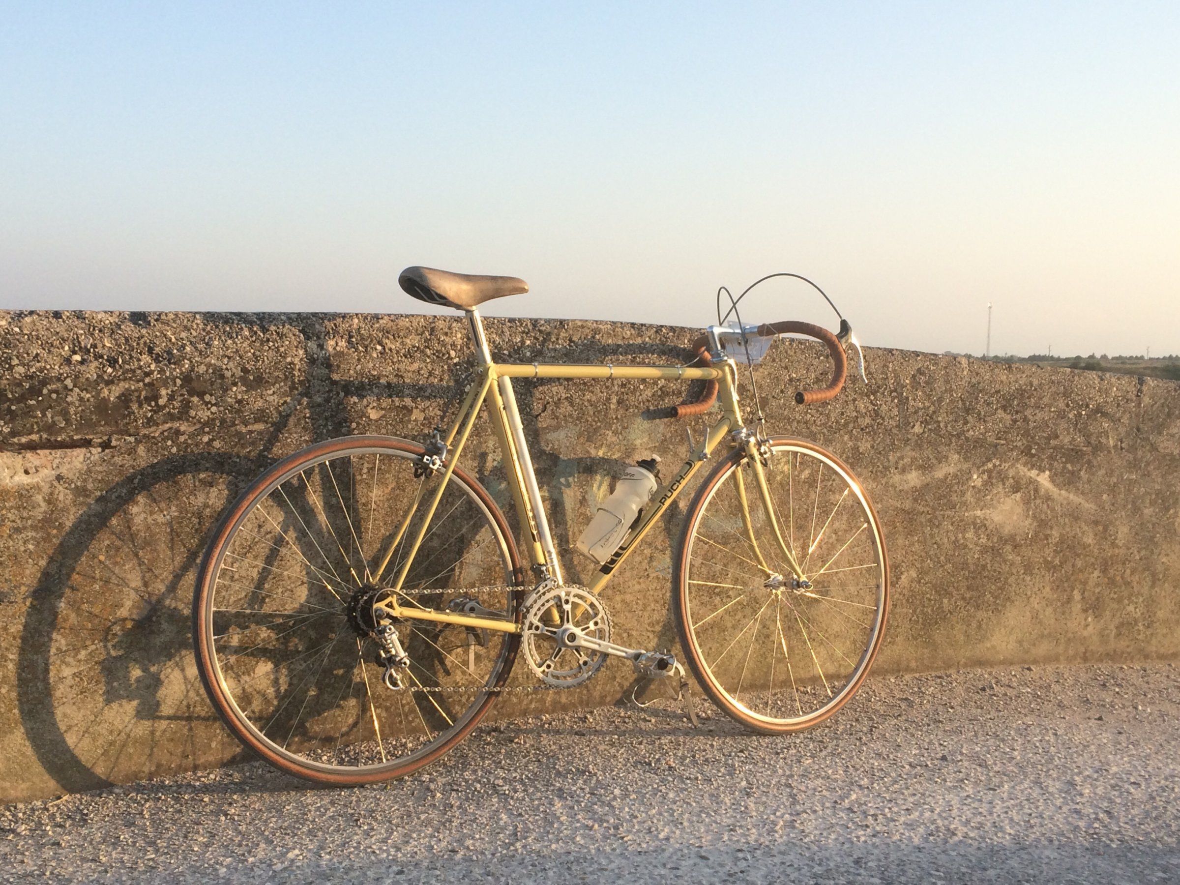 Aufgebaut mit einer kompletten Dura Ace der 1. Generation (wie es auch serie war). Das Rad, das ich wirklich am liebsten fahre!