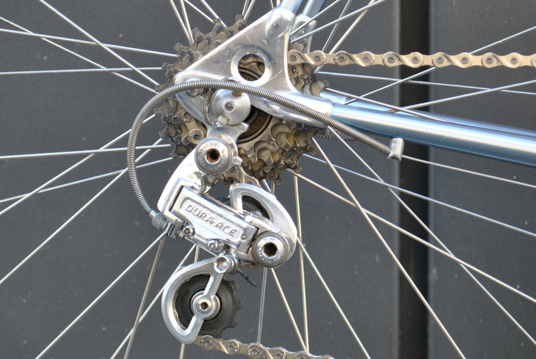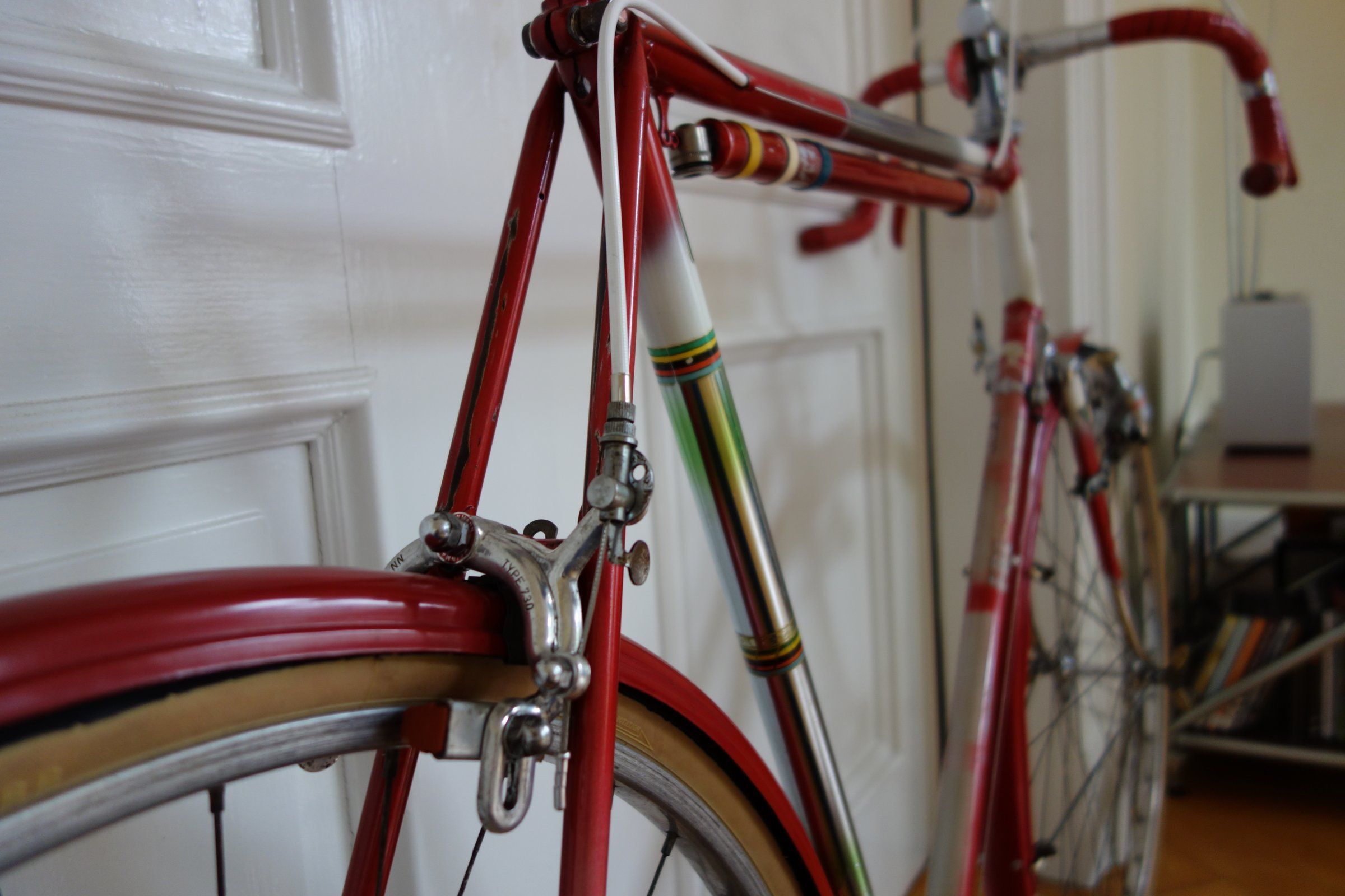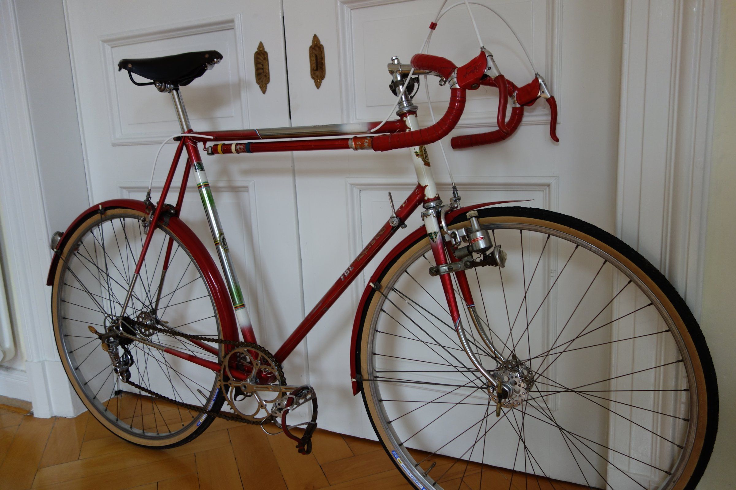Ob der Meister selber oder ein angestellter die Lötlampe geschwungen haben ließ sich für mich nicht herausfinden, allerdings ist die Info für mich auch nicht existenziell. Das Ziel war natürlich ein zeitgenössisches Fixie aufzubauen, mit allem was so eine Sache teuer machen kann, ergo Blockkette mit passendem Kettenblatt und Ritzel, Holzfelgen und zeitlich passender Lanker/Vorbau Kombination. Dank großer Unterstützung aus Braunschweig, wofür ich meinen alten Volvo auf der A7 geopfert habe (dämliche Schnarchnase hinter mir