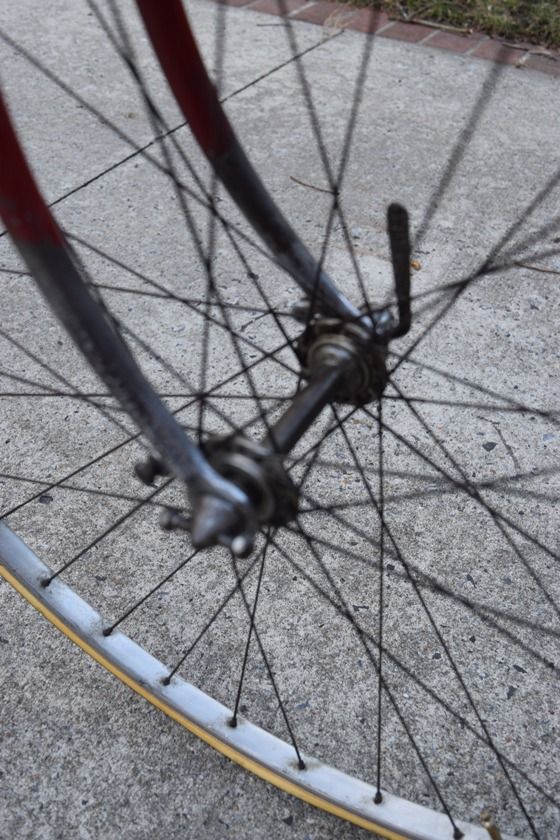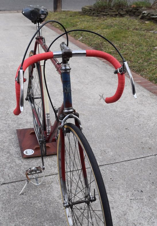 Schaltung und Naben von Campagnolo, Bremse von Universal, Pedalen von Sheffield. Als ich den Rad gefunden habe gab es ein modernes Kunstoff Sattel das ich mit den Brooks Sattel getauscht habe. Ich fahre immer noch ab und zu mit diese Rad. Die Bearbeitung is sehr gut und ganz bestimmt besser als durchschnittlich. Die verchromte Teilen des Rahmens habe etwas Glanz verloren aber sind weiter in Ordnung.