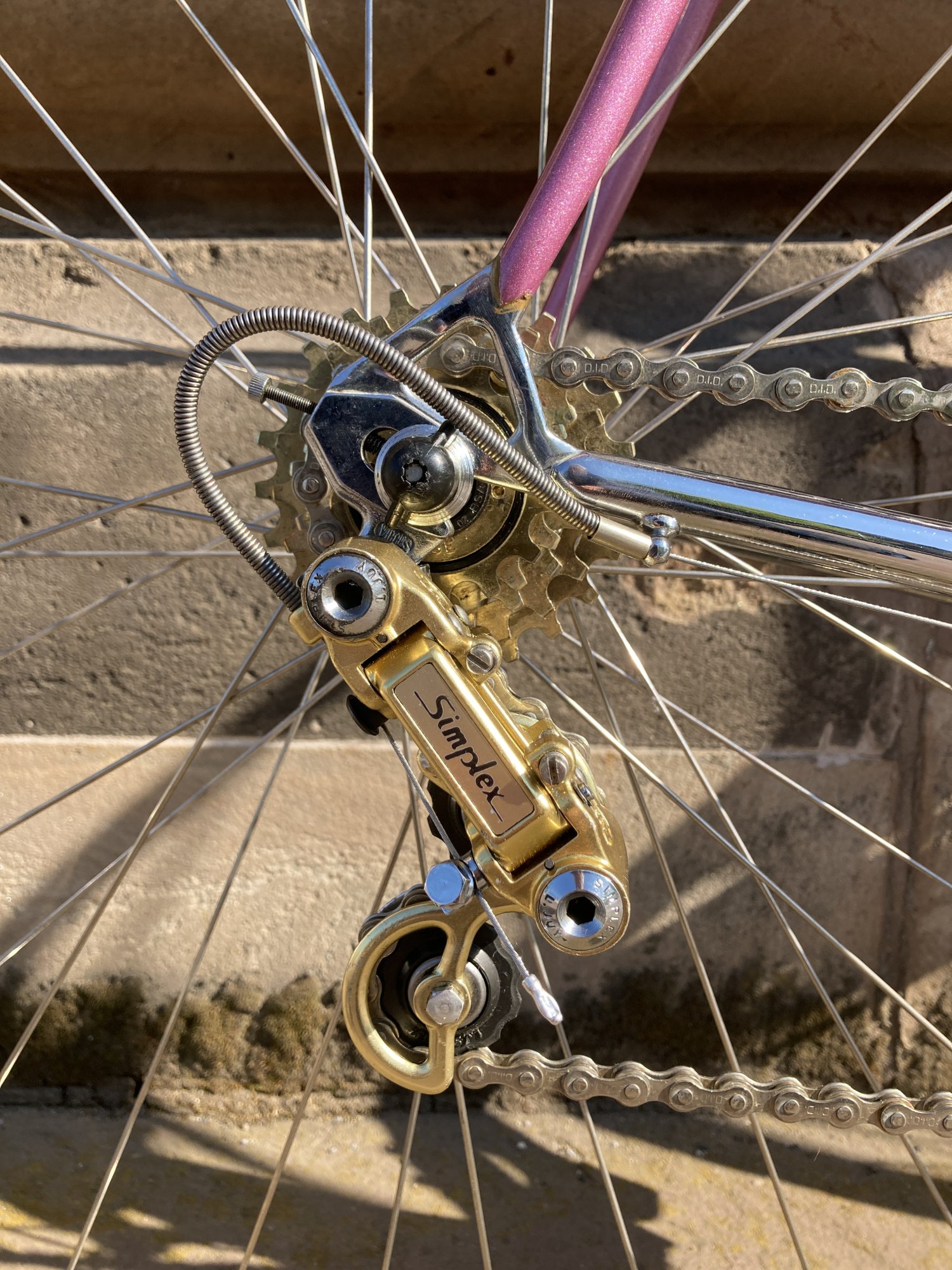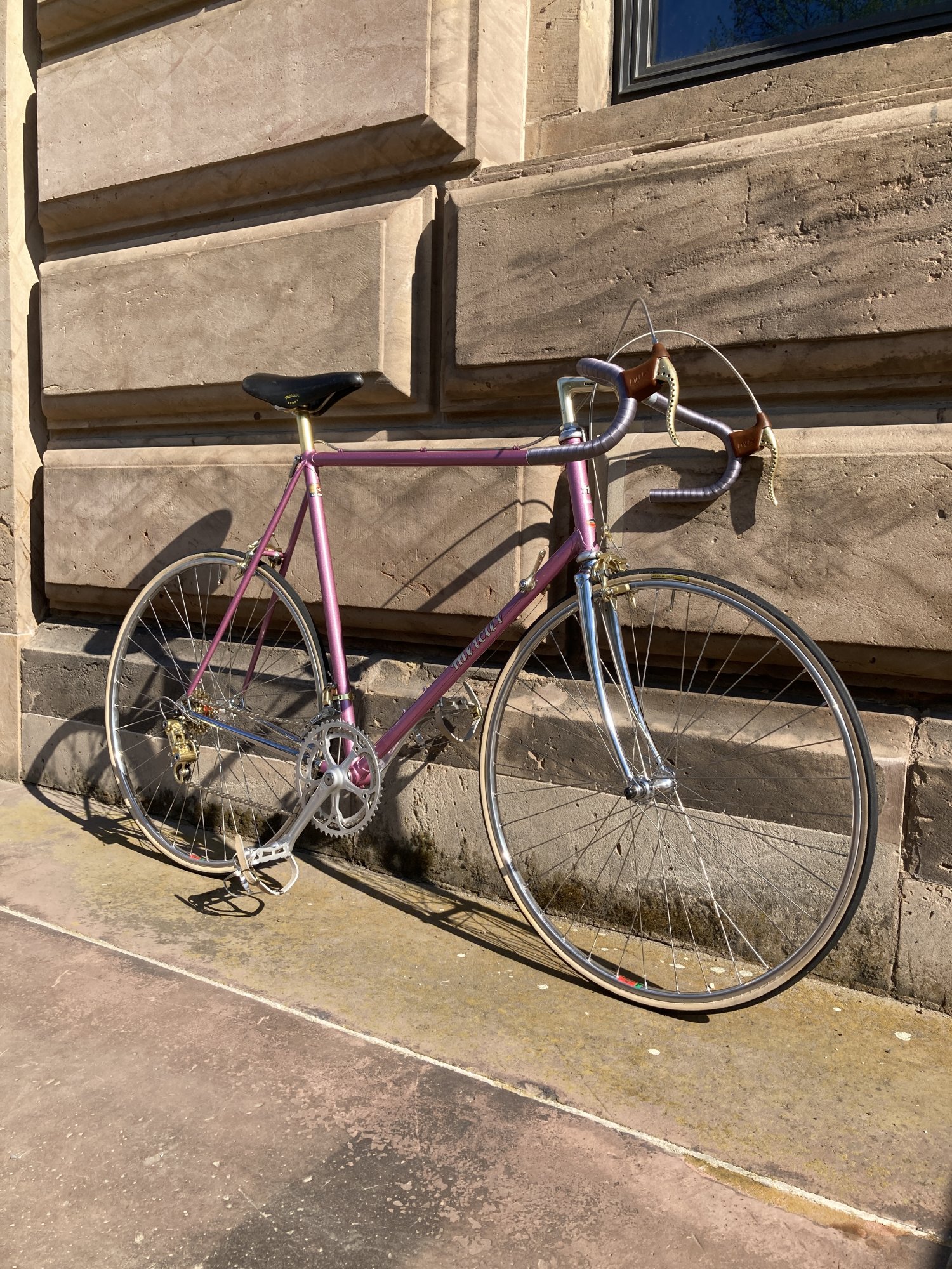 Wie so meistens ging es dann doch nicht ganz so schnell mit der Umsetzung aber durch große Unterstützung hier aus dem Forum ist es dann doch endlich fertig geworden. Der fantastische, von alleine laufende Spidel/Maillard700/MavicE2 Laufradsatz sowie Schaltzüge kamen von @DS19Pallas; der schnurrende Maillard 700 Schraubkranz von @braner.71; das schicke Benotto Lenkerband von @grumpy0ldman ; und, quasi als i-Tüpfelchen, die fehlenden Philipp Sticker für den Vorbau von @vintagecycles4ever . Großer Dank geht auch an @byf der mit die Gabel auf die richtige Länge gebracht hat, - und natürlich an das Franzosenforum die hilfreich beraten haben wie denn diese Simplex SLJ Schalthebel von der Schelle auf Anlöten umgebaut werden können.