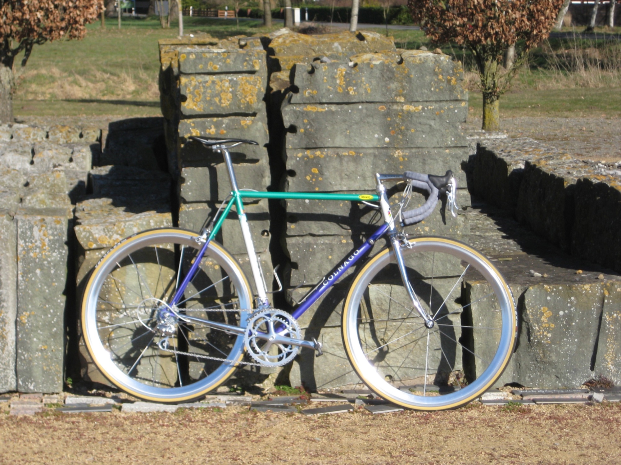 Es war mit einer Dura Ace Gruppe aufgebaut aber bei diesem Rahmen kam für mir nur eine Campa C Record in Frage. (Okay der Steuersatz ist ein Chorus Kompromiss)