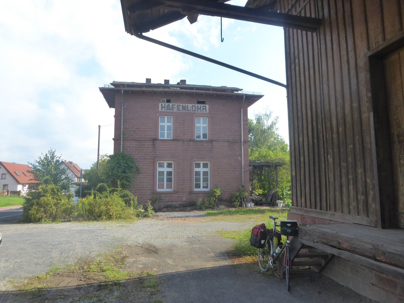 Der Bahnhof ist, obwohl er wohl seit Jahren ungenutzt ist, in einem schönen Zustand. Scheinbar wurden schon einmal Konservierungsmaßnahmen unternommen, aber in den letzten ca. 2 Jahren hat sich nicht mhr geändert. Das Nebengebäde ist sehr schön renoviert und dient als privates Wohnhaus. Leider, man sieht es an dem Haus rechts, ist die Strecke entwidmet und mittlerweile mehren sich die Stellen an denen das ehemalige Gleisbett neu bebaut wird. Dies, die Demontage der Mainbrücke in Wertheim, kostentreibende weitere Brücken und zwei Tunnels machen eine heute wieder interessante Reaktivierung unmöglich. Im ersten Streckenabschnitt bis Martheidenfeld gab es auf nichtmal 20 Km 11 unbeschrankte Bahnübergänge! Eineige davon werden noch heute vom Straßenverkehr "überschlängelt" als könnte gleich ein Zug kommen ;-) Genau das wollte man vor 40 Jahren mit der Stillegung abschaffen :-O