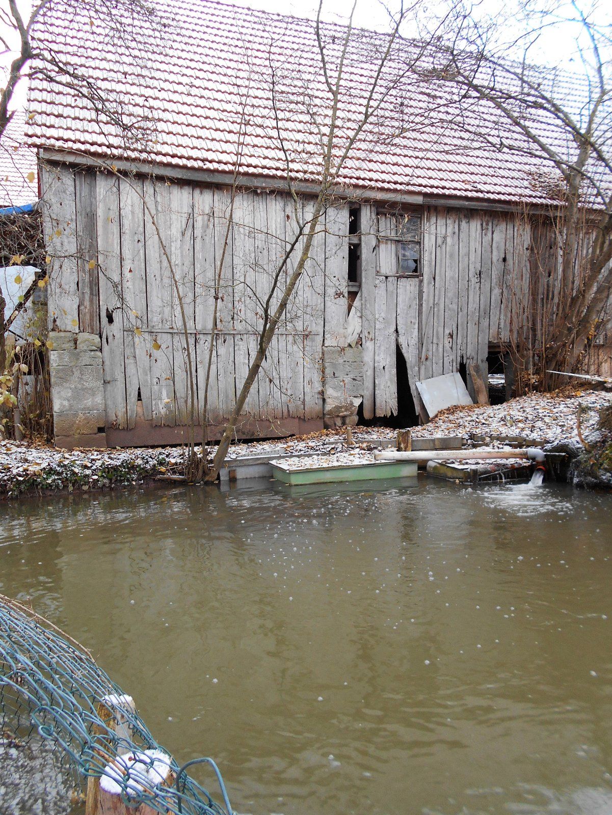 Eine letzte Mühle am Deichselbach habe ich noch gefunden, als ich mich nach dreimaligem umdrehen doch getraut habe, ein Bild über den blickdichten Zaun zu schießen. Viel ist nicht mehr übrig von der einstigen Bestimmung aber immerhin: