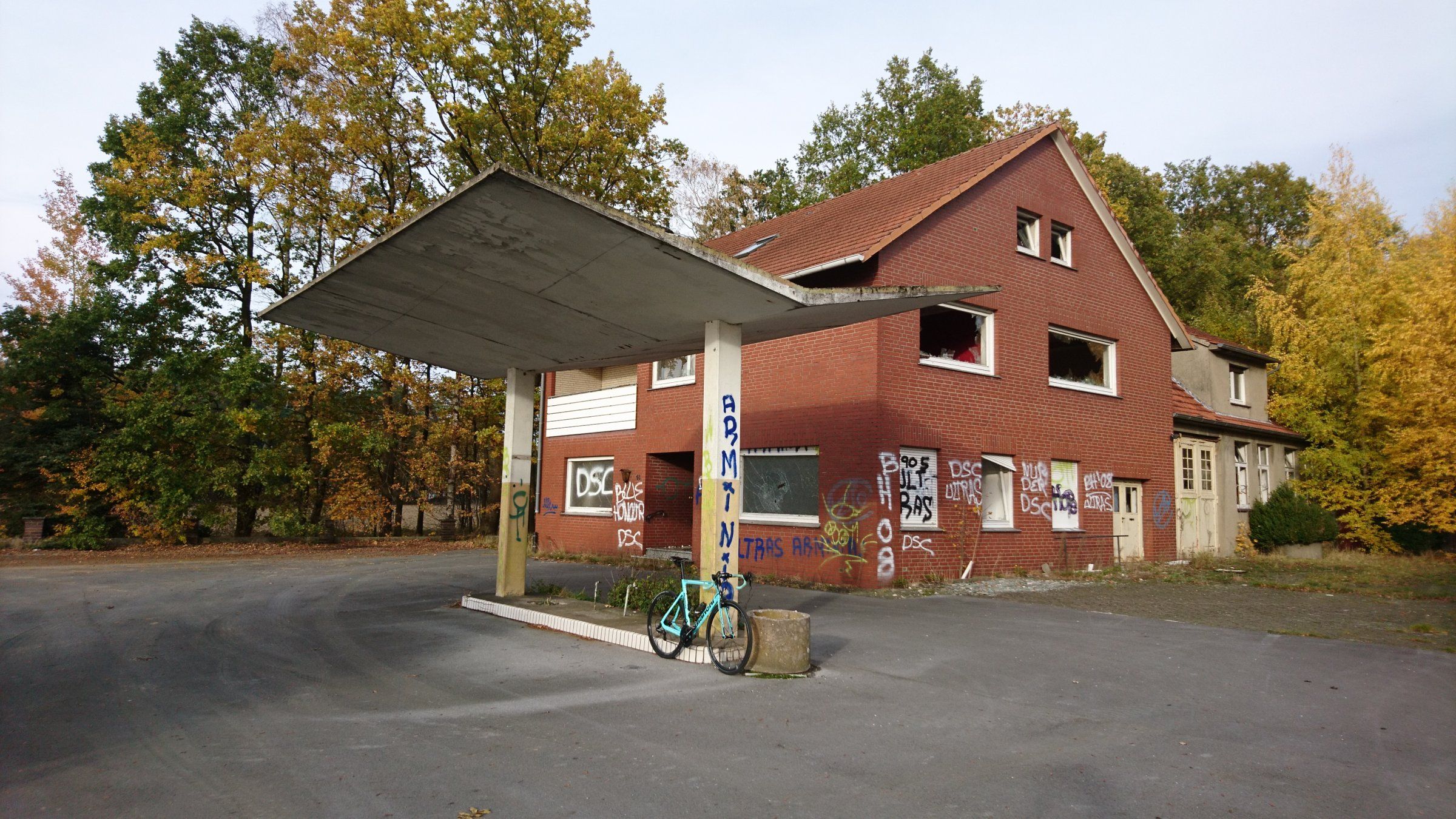 Argh, die Tanke ist genau rechts außerhalb vom Bild, ein halbes Grundstück daneben.