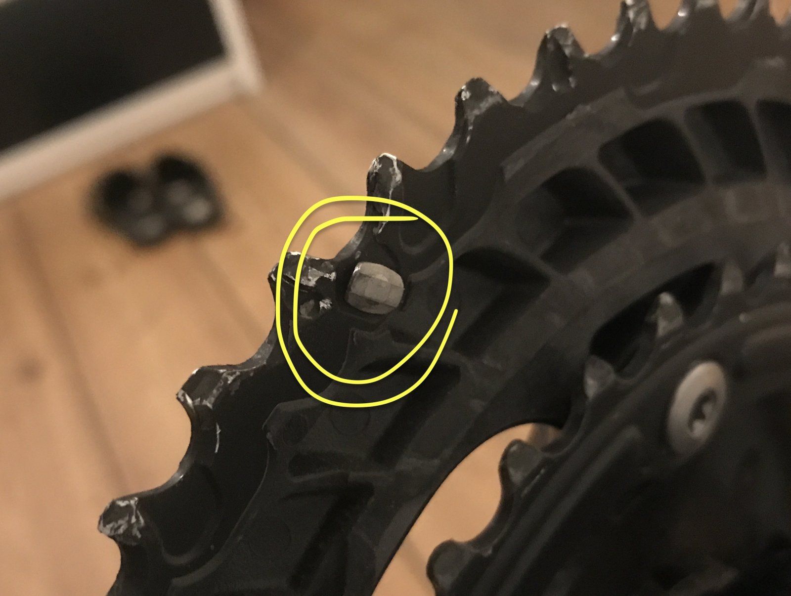 Immer bei gleicher Pedalstellung, mit jeder Umdrehung und bei höherer Last. Konnte nur Kettenblätter,