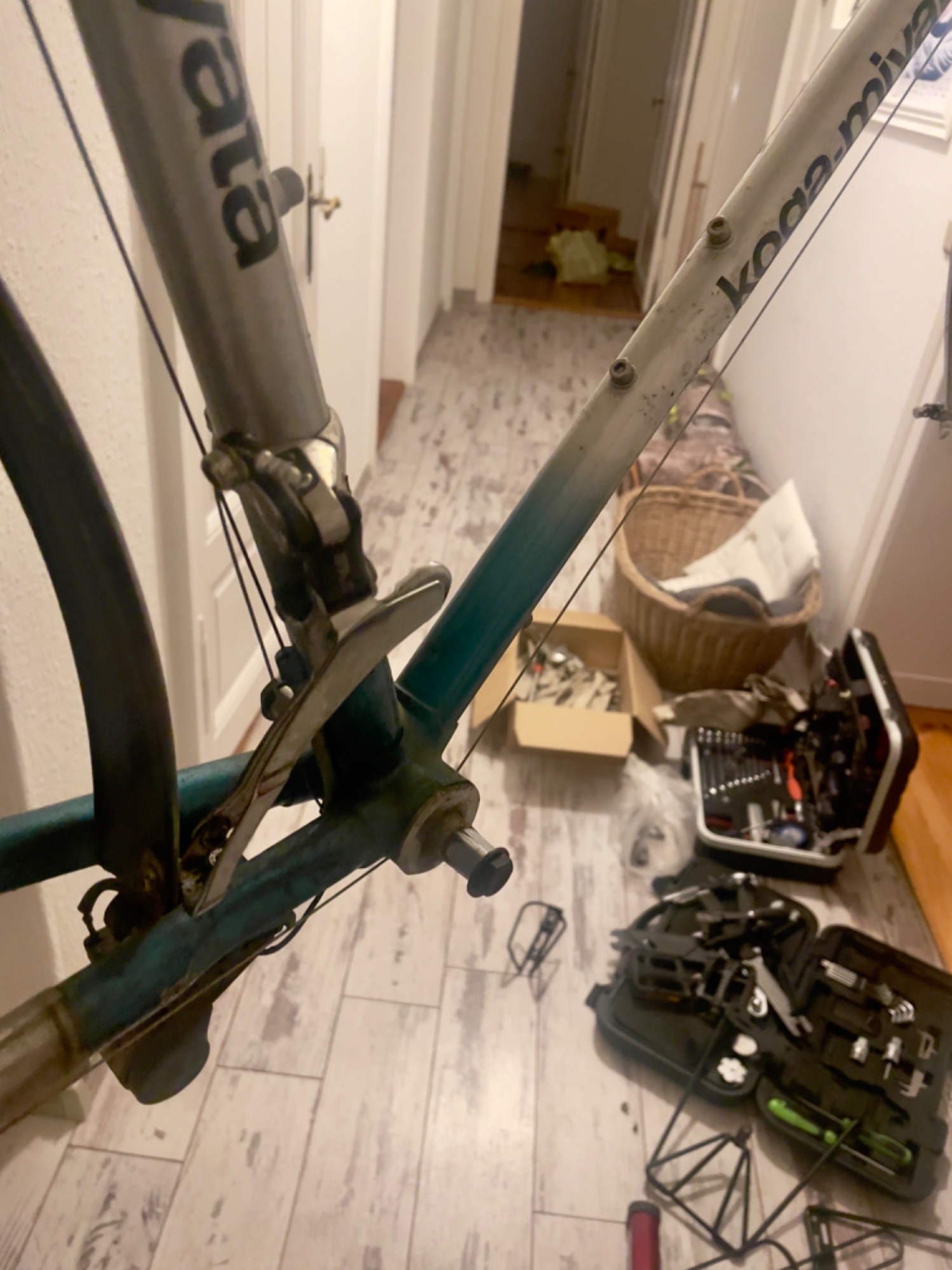 - Kurbel, Schaltwerk und Umwerfer bleibt gleich. Ich montiere eine 9 FachKassette minus einem Ritzel damit die auf den 7er Freilauf passt.