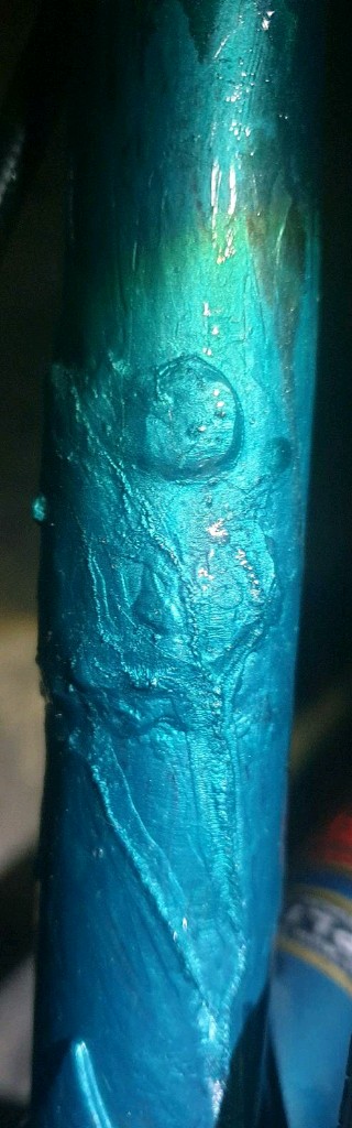 Beim Neuaufbau meines alten Koga Traveller ca. '91, kam der total verwitterte Lack ab. Vorher sah alles super aus, als der Lack ab war, kamen unten am Oberrohr viele kleine Löcher zum Vorschein. Wurde durch einlöten eines neue Oberrohrs repariert, wirtschaftlich natürlich kompletter Unfug ab nach 30 Jahren hing ich halt irgendwie an dem alten Teil.