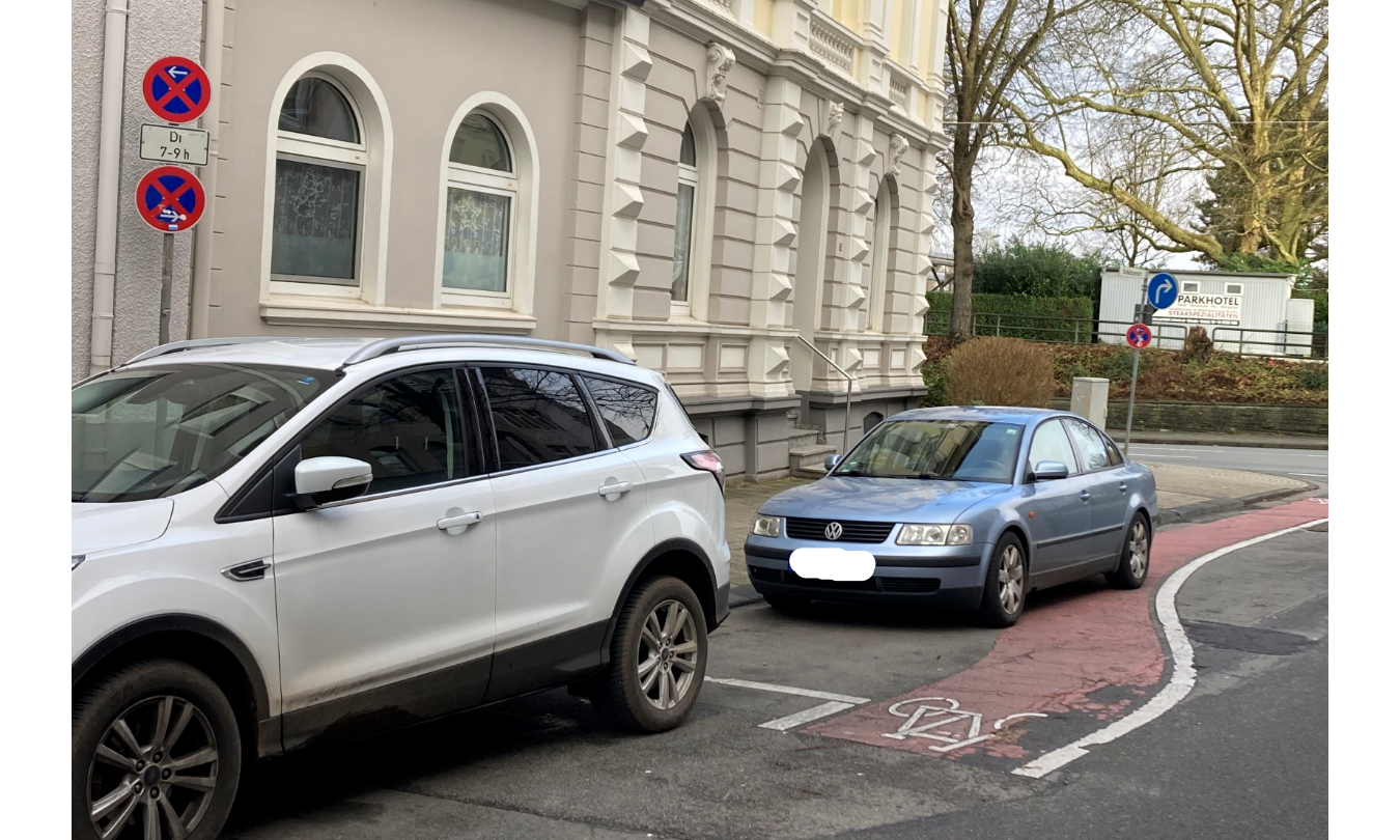 Wenn ich an den parkenden Fahrzeugen bei Gegenverkehr vorbeifahre, kann dieses Auto den Mindestabstand von 1,5 m zu mir als Radfahrer ja nicht mehr einhalten.