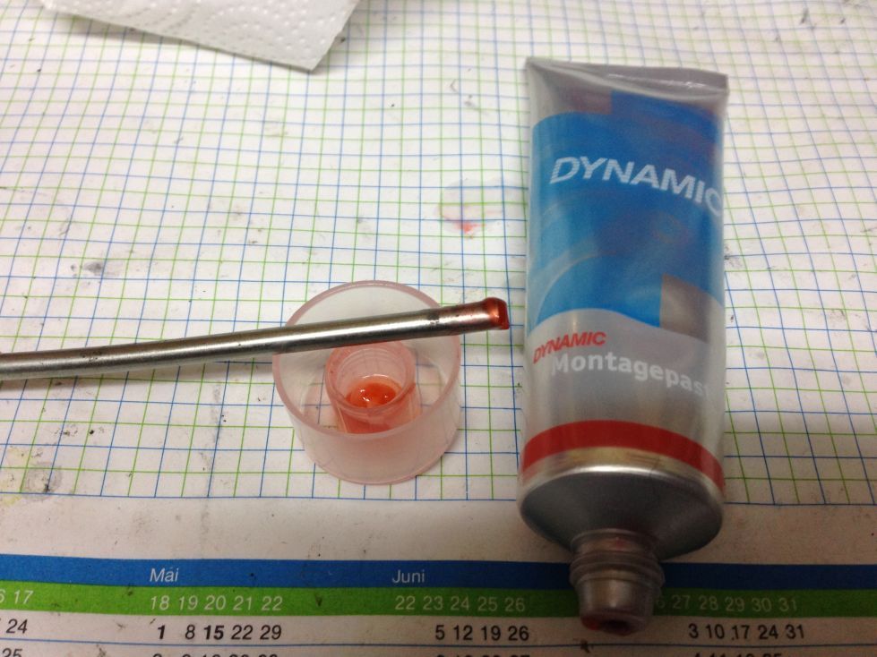 Und an jede Schraube kommt vorher Fett. Damit die Schrauben nicht fest korrodieren. Ist so ähnlich wie Rost. Oder damit die beweglichen Teile besser gleiten.